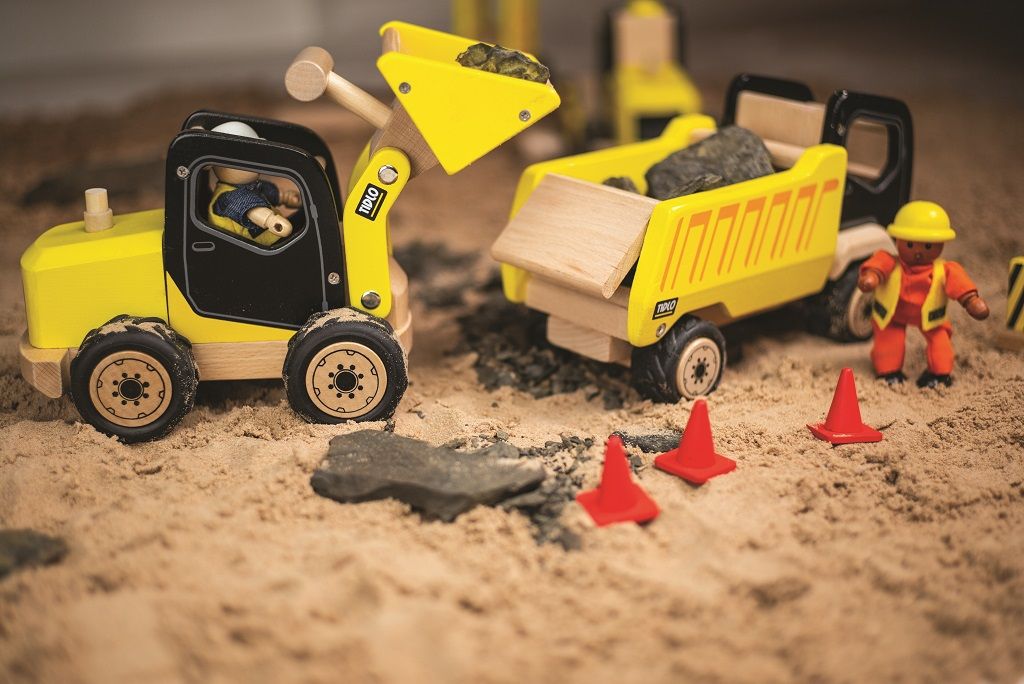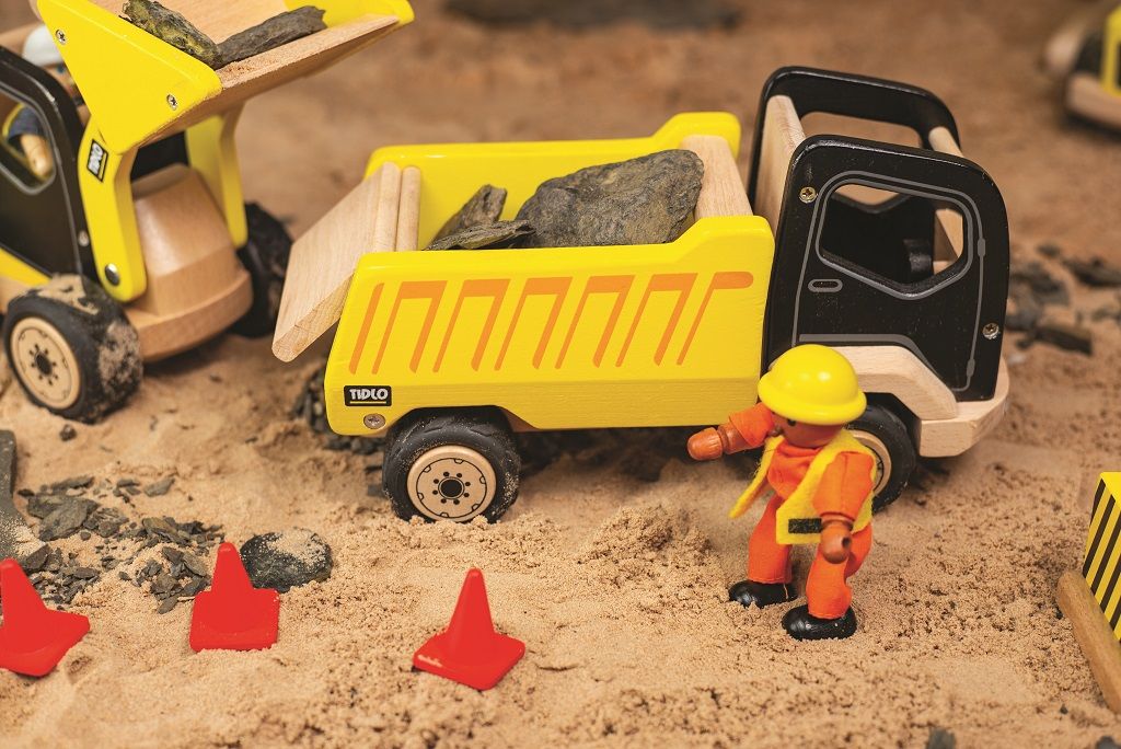 Tento odolný a detailní dřevěný sklápěč je perfektní na převážení vymyšlené hlíny a jiných materiálů stavby. Má sklopné zadní dveře a velká, zavalitá gumová kola, která jsou ideální na hladké plochy. Automobil je celkově navržen tak, aby byl jednoduše uchopitelný malýma dětskýma rukama. Podporuje dětskou kreativitu a představivost. Rozvíjí koordinaci ruka-oko a jemnou motoriku. Vyrobeno z kvalitních materiálů z odpovědných zdrojů. Odpovídá evropské bezpečnostní normě.  Hlavní vlastnosti: jednoduše uchopitelnýpodporuje kreativitu a představivostjednoduché vložení figurek stavitelů