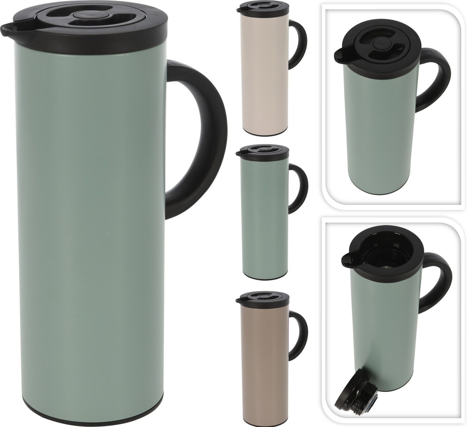 Hnědá termoska o objemu 1 L. Vakuová termonádoba má hnědé tělo a černé víko a držadlo. Dvouplášťové zpracování a vnitřní skleněná nádoba udrží váš nápoj až 6 hodin při původní teplotě, ať teplé či studené. Vnitřní skleněná nádoba je křehká, nemíchejte nápoje přímo v termosce tvrdými předměty.  výborné izolační schopnosti jednoduchý a nadčasový design skleněná vnitřní nádoba objem 1 litr výška termosky 30cm  Ø termonádoby 11cm
