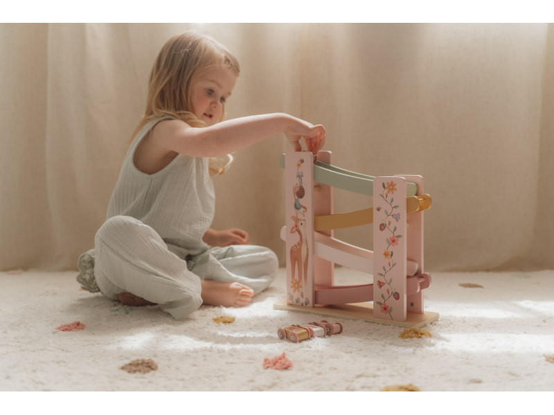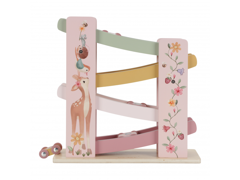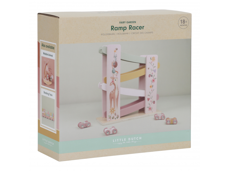 Krásná závodní dráha Little Dutch se čtyřmi autíčky zabaví vaše dítě i vás! Každé autíčko má na sobě obrázek jednoho zvířátka, závodí tak mezi sebou ježek, motýl, beruška a ptáček. Dráha je potištěna něžnými motivy ze života na zahradě. Díky kvalitnímu dřevěnému provedení je dráha velmi stabilní a stane se i krásnou dekorací v dětském pokoji.  Hračka je součástí designové kolekce hraček a doplňků Little Dutch Fairy Garden inspirované životem na zahradě.  Rozměry: 10 x 28 x 28 cm Vhodné pro děti od 18 měsíců.