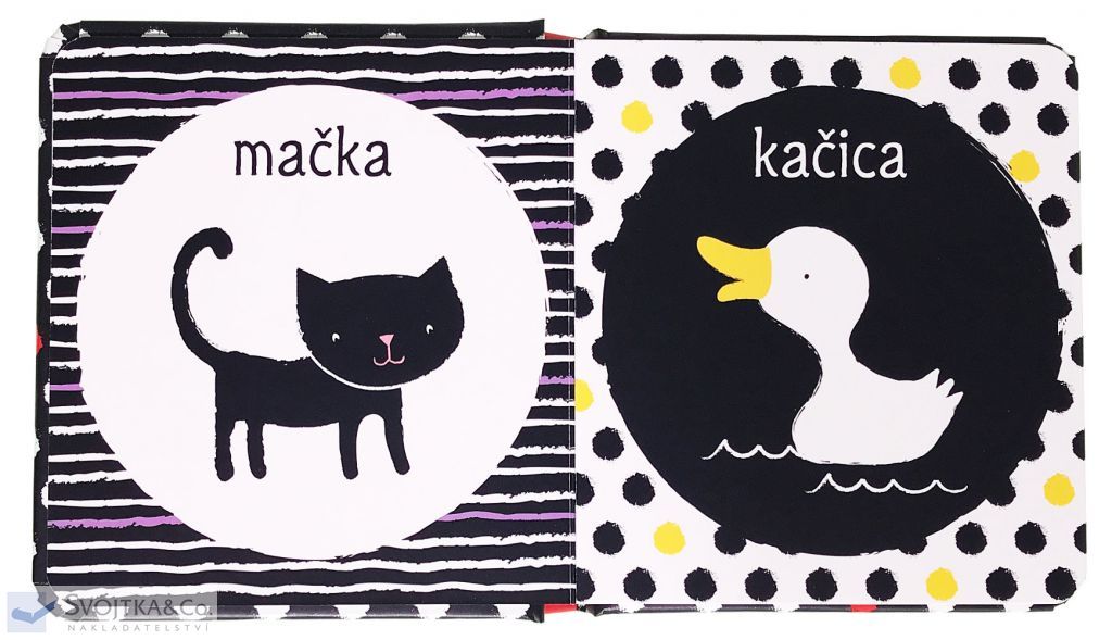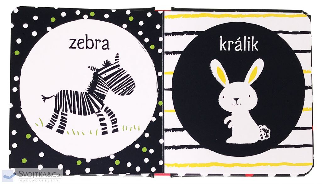Prvá čiernobiela knižka pre bábätko ZvieratáIdeálna prvá knižka pre vaše bábätko.  Veľká je tak akurát do detských ručičiek, má oblé hrany a vďaka pevným stránkam vydrží aj menej šetrné zaobchádzanie. Obrázky zvieratiek, prispôsobené malému dieťatku, si vaše bábätko môže prezerať stále dokola. Čiernobiely variant s jemnými farebnými prvkami je pre správny vývoj zraku malého bábätka vhodnejší ako pestrofarebné obrázky.  Ukážte svojmu dieťatku, ako má otáčať pevné stránky, a rozvíjajte tak u neho jemnú motoriku a koordináciu pohybu prštekov.