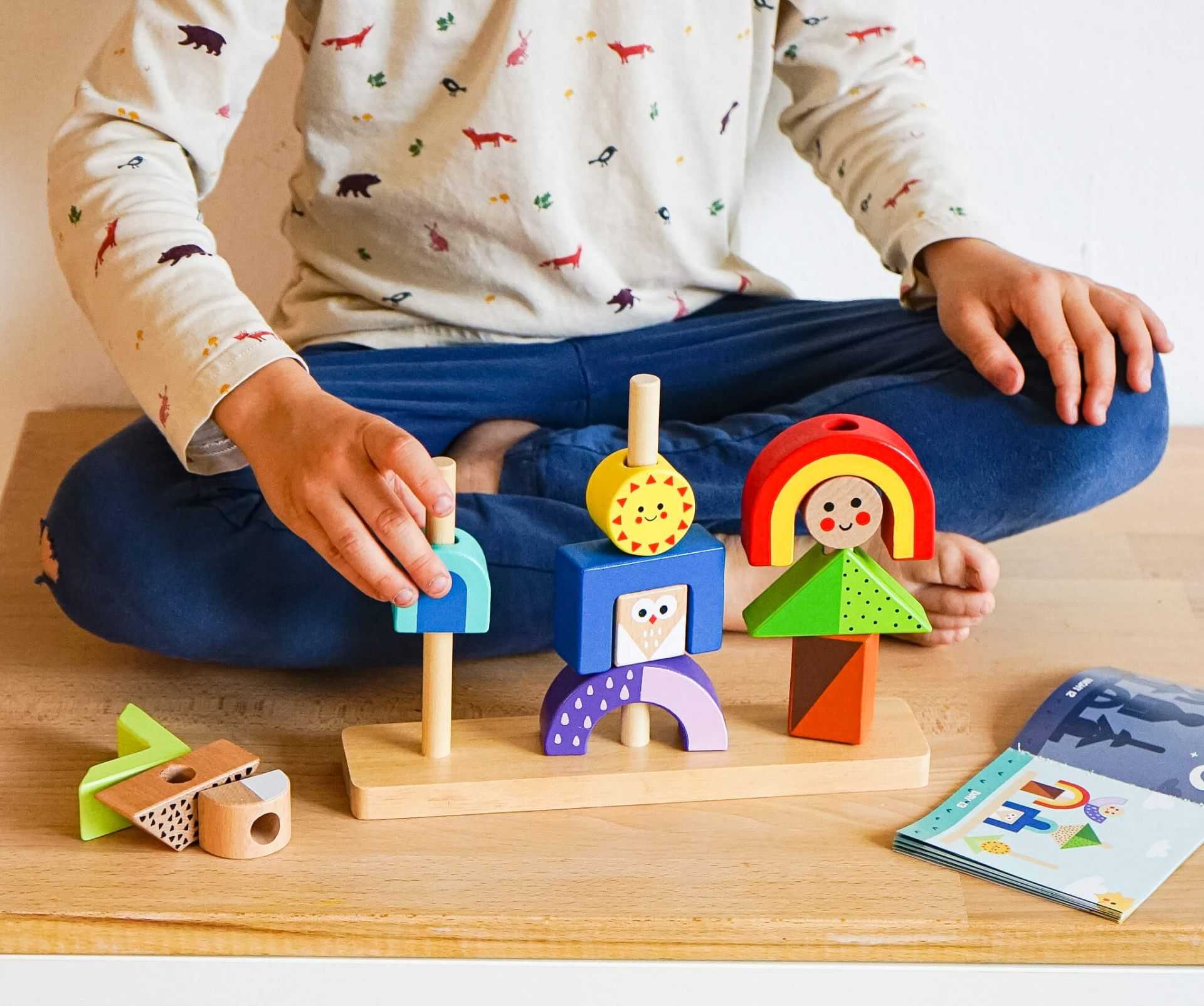 Nasadzovanie TieneDeti nasadzujú kocky podľa tieňových predlôhDrevená logická hra Nasadzovanie Tiene je vyrobená z pevného dreva. Obsahuje 12 rozdielnych kociek, ktoré sú krásne farebné a maľované bezpečnými farbami. V balení nechýba ani základňa s tromi tyčkami na nasadzovanie a knižočka s 24 predlohami. Deti ale môžu kocky nasadzovať aj podľa seba. Fantázii sa medze nekladú. Hra rozvíja logické mysleniePredlohy sú len v podobe tieňa a deti tak len na základe obrysu hádajú, kam akú kocku nasadiť. Až stavbu dokonči, otočí stránku a podľa farebného obrázku zistí, či všetko poskladali správne. Deti si pri hre okrem logického myslenia taktiež cvičia pozorovacie schopnosti, rozpoznávanie tvarov, jemnú motoriku či koordináciu ruka-oko. Logická hra je vhodná pre deti od 3 rokov.
