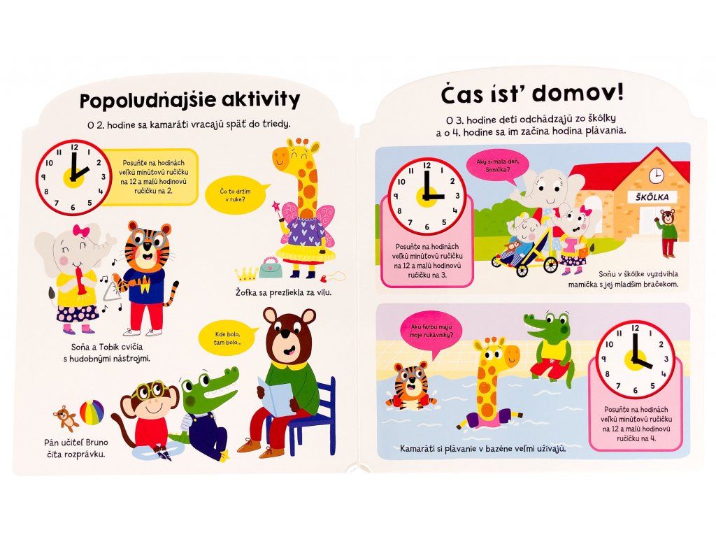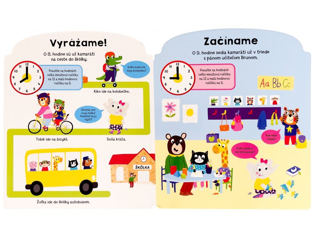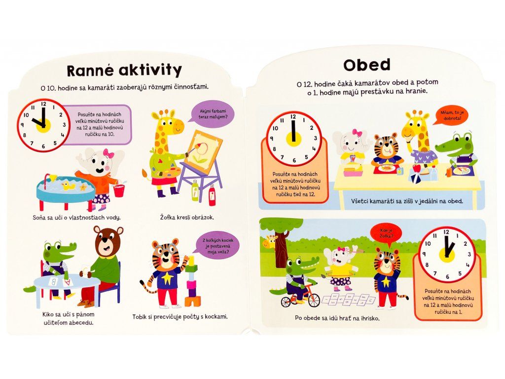 Moje prvé HodinyUrčovanie času bude odteraz hračkou.V tejto knihe nájdete hodiny s pohyblivými ručičkami a s názornými ukážkami na pochopenie času si užijete veľa zábavy a tiež precvičíte jemnú motoriku. Ideálna pomôcka na poznávanie a pochopenie času. Deti si zároveň precvičujú jemnú motoriku.Na jednotlivých stránkach deti nájdu názorné ukážky z bežného dňa zvieracích kamarátov, takže si dané hodinové úseky môžu rovno spojiť s rôznymi dennými aktivitami. Kniha obsahuje hodiny s pohyblivými ručičkami, takže si deti môžu čas sami priamo "ohmatať" a taktiež si precvičia jemnú motoriku.