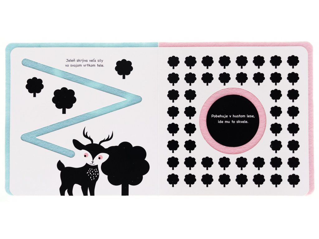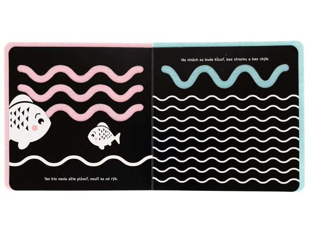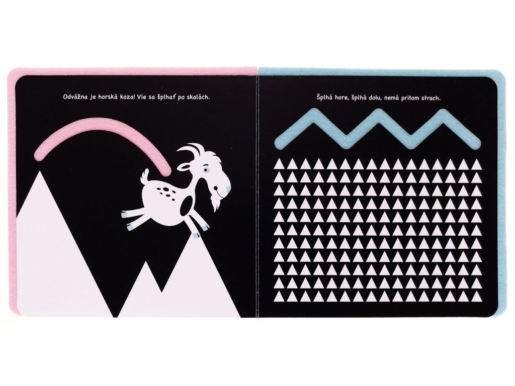 Hop! Cestička pre prstyDeti sa zoznámia s množstvom hravých tvorov, ktorí chvíľku nepostoja!Veršované leporelo z ľahkého materiálu s mäkkými cestami pre prstíky, ktoré vedú medzi rôznymi zvieratkami. Dieťa ich môže nasledovať a rozvíjať jemnú motoriku. Vďaka kontrastným ilustráciám stimuluje zrak našich najmenších.Behať, skákať, lietať aj plávať – to všetko zvieratká dokážu. Nechajte batoľatá preskúmať prštekmi mäkké cestičky v tejto knižke. Vďaka plstenej výplni na každej stránke je knižka výnimočne ľahká, čo ocenia hlavne naši najmenší, ktorým sa budú stránky ľahko otáčať. Knižka je v základe čiernobiela, s kontrastnými ilustráciami pre zdravý rozvoj zraku. Ale pretože je zložená z viacerých materiálov, obsahuje aj ďalšiu jemnú farbu. Plstené cestičky stimulujú detské prstíky a sú veľmi príjemné na dotyk.
