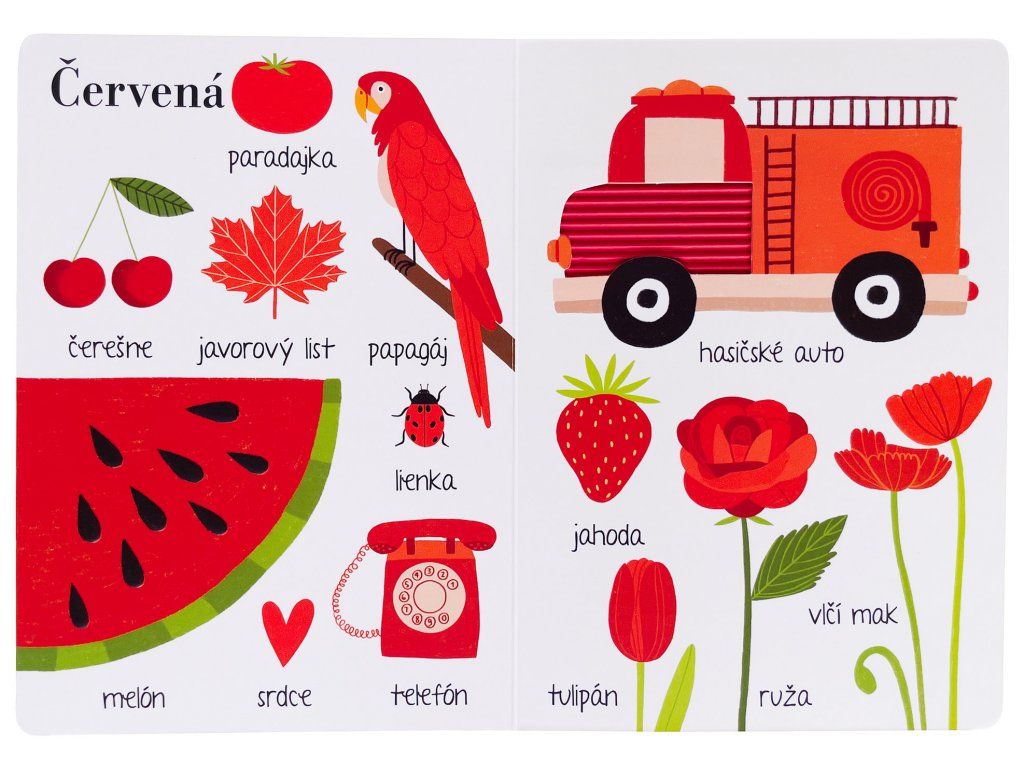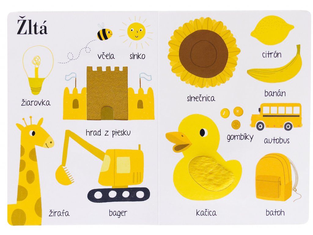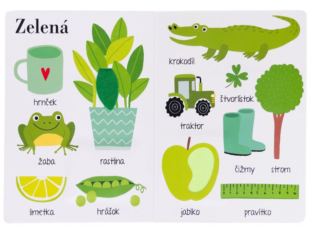 Dotkni sa a spoznaj FarbyIlustrované leporelo s hmatovými prvkami pre našich najmenších.Roztomilé ilustrácie s hmatovými prvkami na každej strane tohto leporela sú špeciálne navrhnuté pre našich najmenších. Deti sa tak zábavnou formou zoznamujú nielen so základnými farbami, ale tiež so zvieratami, predmetmi každodennej potreby, potravinami či hračkami.  Zoznámi ich základnými farbami a najrôznejšími zvieratami, predmetmi, potravinami či hračkami.Dotykový prvok na určitých predmetoch deťom zjednoduší ich spoznávanie a tiež si tak precvičia aj ostatné zmysly.