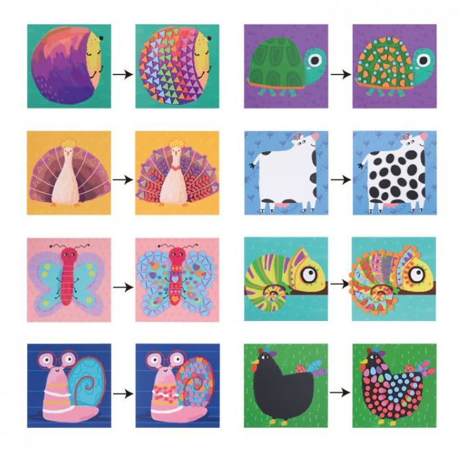Nalepovacia mozaika Prvé zvieratkáDeti si vytvoria krásne mozaikové obrázkyNalepovacia mozaika Prvé zvieratká od Tookyland predstavuje skvelú aktivitu na jemnú motoriku a kreativitu. Deti v balení nájdu 8 rozkošných predlohových obrázkov, ktoré si môžu dokončiť prostredníctvom niekoľkých stoviek penových farebných samolepiek. Mozaiky rozvíja kreativitu a predstavivosť Na obrázkoch nie sú žiadne predkreslené políčka, kam ktorá časť mozaiky patrí, takže deti môžu úplne popustiť uzdu svojej fantázii a dokončiť zvieratká úplne podľa seba. Dokončené obrázky si môžu vyvesiť v izbičke.