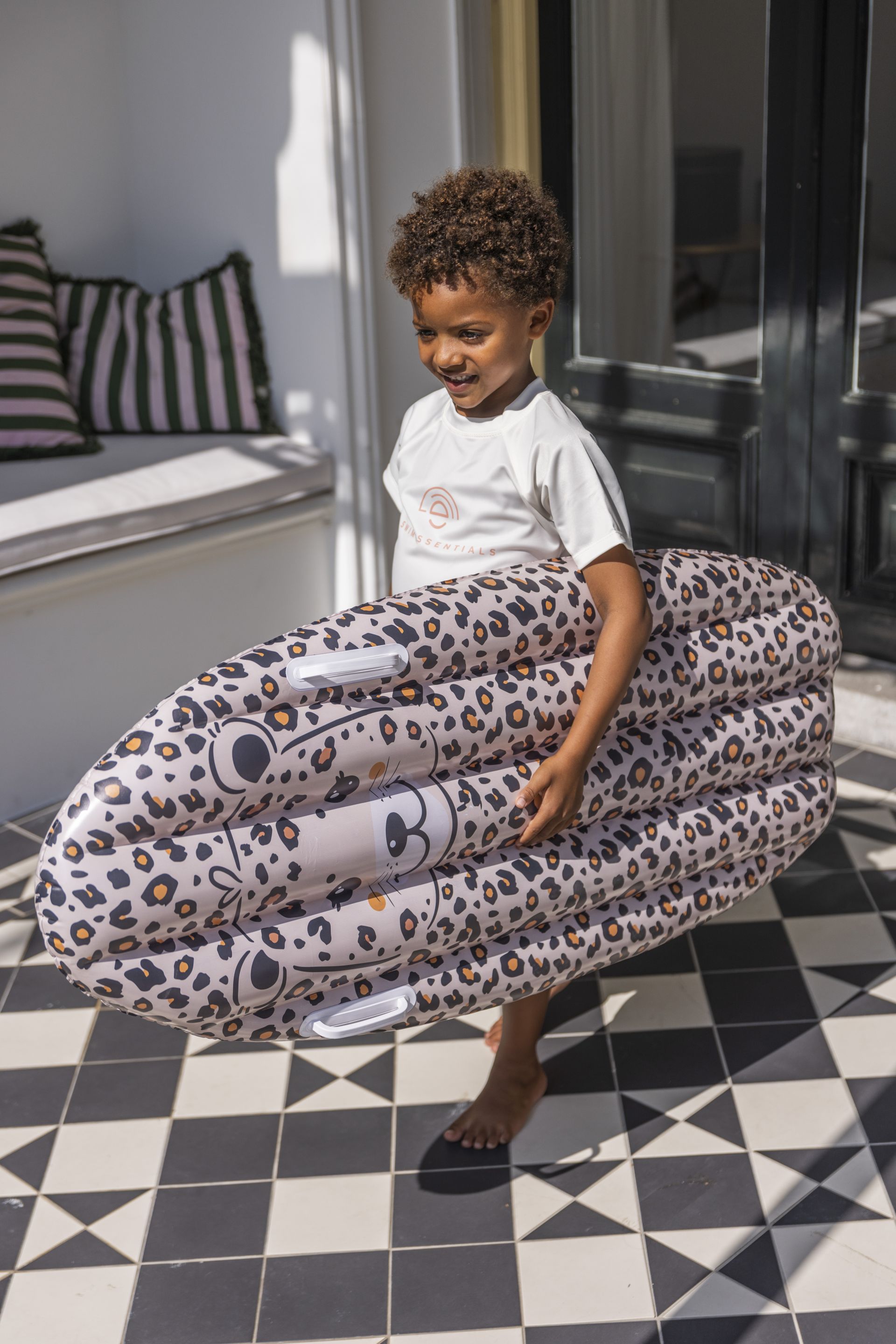 Nafukovací surf Leopard béžový Skvelá letná zábavaVeselý nafukovací surf od Swim Essentials v obľúbenom dizajne béžový leopard bude robiť deťom radosť v bazéne aj na dovolenke pri mori. Deti sa na ňom môžu hojdať na vlnách, organizovať vodné bitky, ale vďaka dvom pevným madlám poskytuje nafukovací surf aj potrebnú oporu deťom, ktoré sa vody ešte trochu boja. Ľahko ho zbalíte na dovolenkuSurf je určený deťom približne od 6 rokov. Je dlhý 120 cm a dostatočne široký, aby sa na ňom váš potomok pohodlne uvelebil. Vďaka nízkej váhe 500 g ho ľahko zbalíte na dovolenku. Nafukovací surf Béžový leopard – jedinečný parťák do vodyPrémiová holandská značka Swim Essentials sa pri všetkých svojich výrobkoch zameriava na vysokú kvalitu, funkčnosť a neopozeraný štýl. Aj tento nafukovací surf je vyrobený z pevného a odolného PVC. V balení nájdete aj jeden set na zalepenie prípadných dier. Výrobok spĺňa všetky európske regulácie.