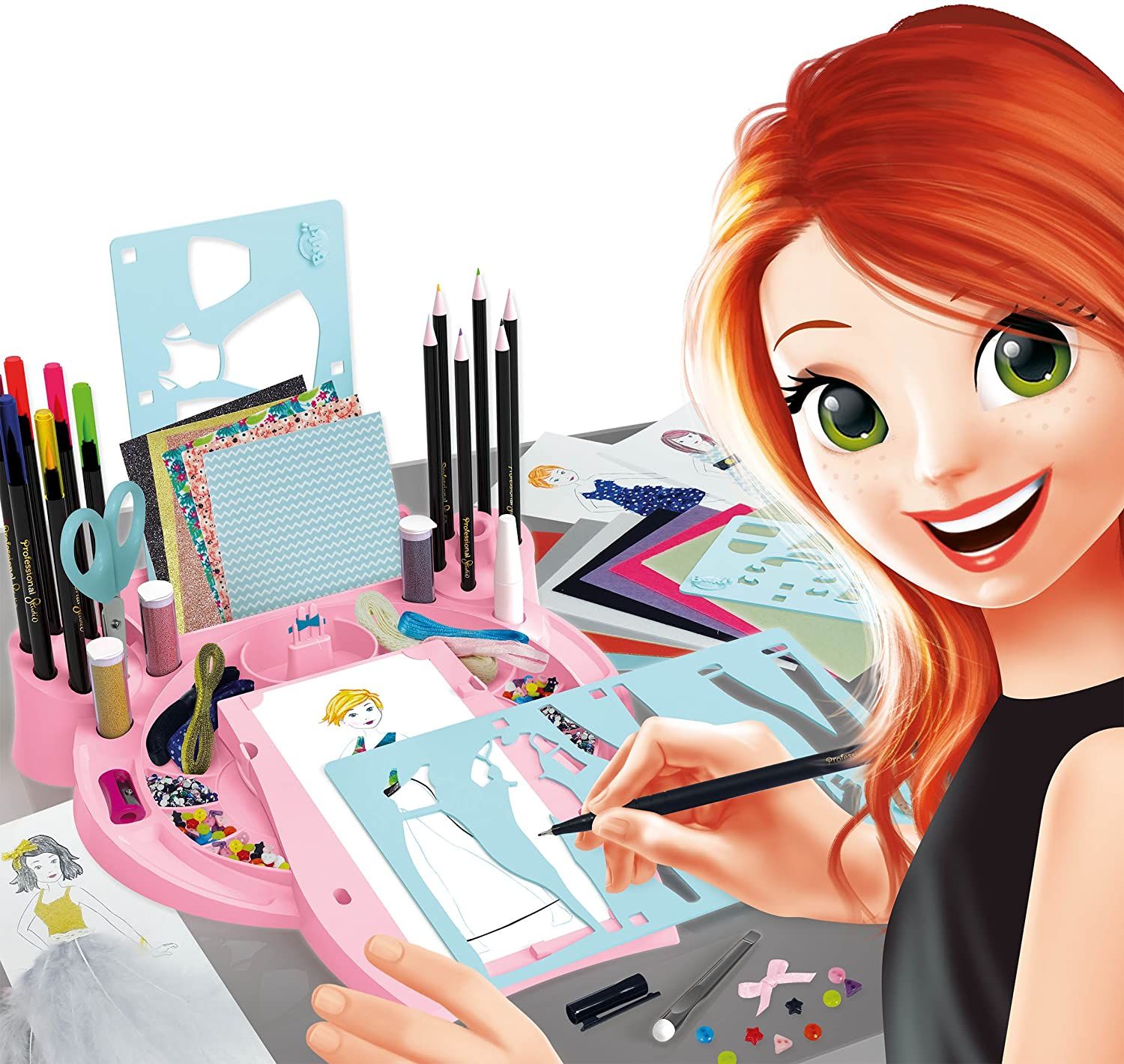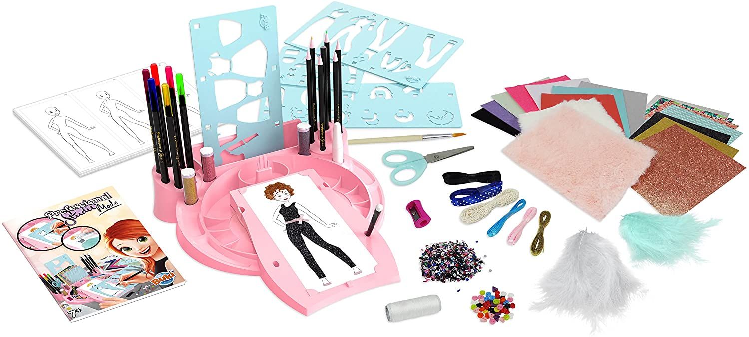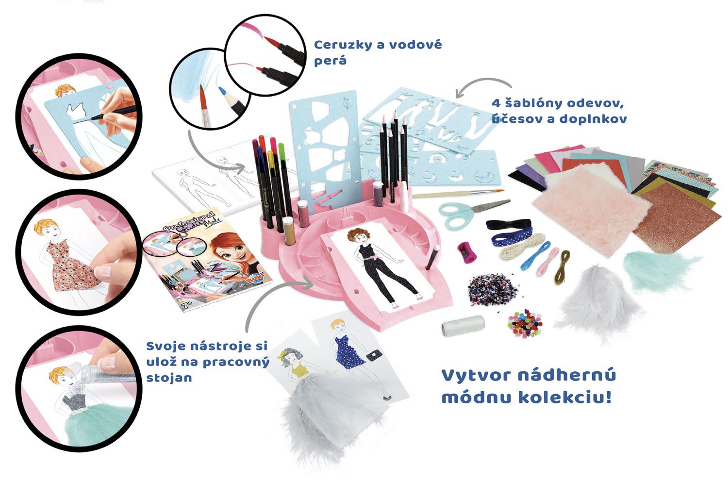 Profesionálne módne štúdio Pre malých milovníkov módyPre malých milovníkov módy a kreatívnych nadšencov otvára štúdio dvere k nekonečnej zábave a inšpirácii! Dieťa si môže vybrať svoju predlohu, navrhnúť oblečenie podľa šablón a potom ich vyplňte pomocou množstva rôzneho príslušenstva, ktoré nájde v balení. Rovnako môže načerpať inšpiráciu z portfólia a vytvárať vlastné trendy. Vytvorte modely podľa predlohy alebo vlastnéV balení prichádza bohatá výbava príslušenstva, ktoré dieťa môže použiť na vytvorenie svojich kreatívnych návrhov. Dodávané príslušenstvo: samolepiaca tkanina, perie, trblietky, plsť, stuhy, fixky, akvarelové ceruzky, nožnice, strúhadlo a ďalšie. Okrem toho sú k dispozícii prázdne predlohy na webovej stránke Buki, aby si dieťa mohlo stiahnuť a začať kresliť podľa vlastných predstáv. Tu nájdete návod