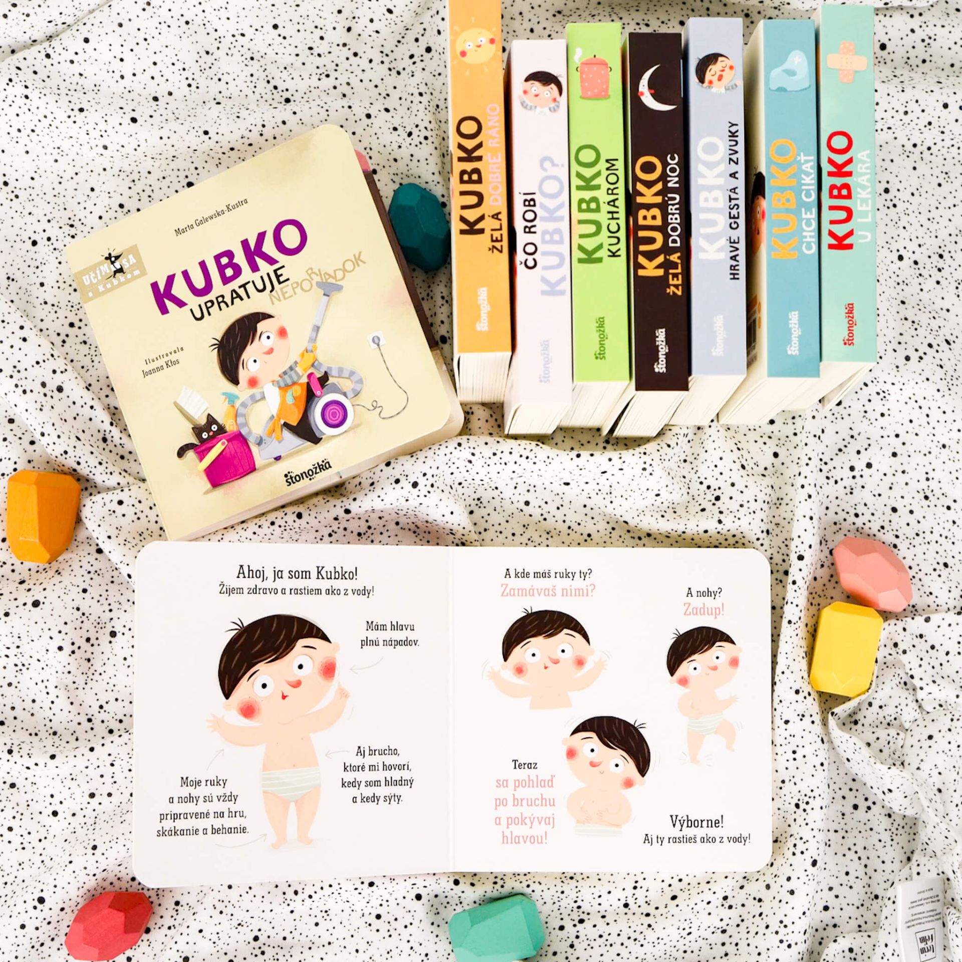 Kubko žije zdravoŽi zdravo s Kubkom.Kubko je vždy za každú zábavu. Zacvič si s ním: zamávaj rukami, pokývaj hlavou a veselo zadup. Potom mu pomôž s obliekaním. Čo sa nosí v zime a čo v lete? Kubko tiež rád jazdí na bicykli. Vtedy si nasadzuje parádne chrániče. Počkať, počkať! Nechýba mu niečo? Poradíš mu, na čo zabudol? To je smola! Nechal doma fľašu. Musí si kúpiť niečo na pitie. Urob s Kubkom zdravý nákup v bufete. Cieľom knižky je oboznámiť dieťa s každodennými zdravými návykmi.Kubko zažil skvelý, hoci únavný deň. Po hre si treba umyť ruky, zjesť chutnú večeru a odpočinúť si. Aj ty si oddýchni. Zajtra opäť pomôžeš Kubkovi žiť zdravo. Leporelo má jednoduchú formu, obsahuje krásne ilustrácie a prirodzeným spôsobom zdokonaľuje detskú reč a rozvíja slovnú zásobu.