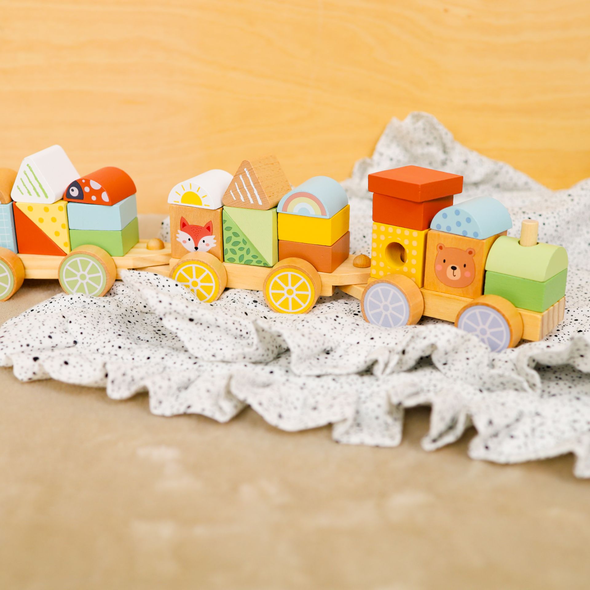 Drevený vláčik Lesné ZvieratkáVláčik, stavebnica aj nasadzovanie v jednomSkladací drevený vláčik značky Tooky Toy zaujme všetkých nadšencov do vlakov, autíčok aj stavebníc. Súprava obsahuje drevenú lokomotívu a dve vozidlá, na ktoré môžu deti podľa ľubovôle nasadzovať rôzne dieliky. Niektoré sú v podobe zvieratiek, iné v podobe rôznych tvarov. Lokomotíva a vagóny sa dajú do seba krásne zapojiť. Vhodný už pre deti od 18 mesiacovDeti si pri hre s vláčikom zlepšujú jemnú motoriku, koordináciu ruka-oko a rozvíjajú predstavivosť. Učia sa aj farby, tvary a rozvíjajú si slovnú zásobu. Stohovací vláčik je vyrobený z dreva z udržateľného lesníctva, natretý netoxickými farbami a pre deti je bezpečný.