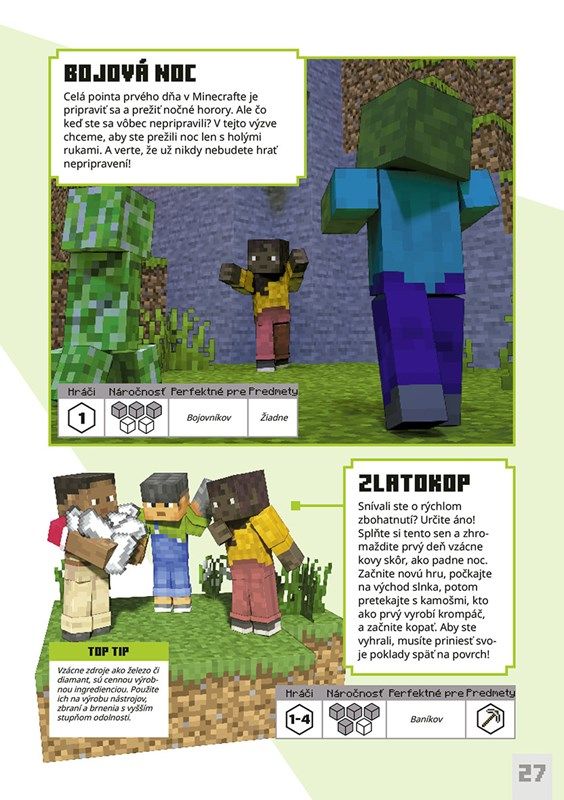 Minecraft - Výzvy na prežitie Preži v Minecrafte ako profík – výzvy, ktoré ťa preveria Hľadáš nové spôsoby, ako si užiť Minecraft naplno? S knihou Minecraft – Výzvy na prežitie ťa čaká poriadna dávka adrenalínu! Nájdeš tu desiatky výziev, ktoré preveria tvoje schopnosti, zlepšia tvoje herné zručnosti a zároveň ti ponúknu inšpiráciu, ako si užiť hru naplno – sám alebo s priateľmi. Priprav sa na zábavné úlohy, tvorivé nápady a poriadne survival testy!
