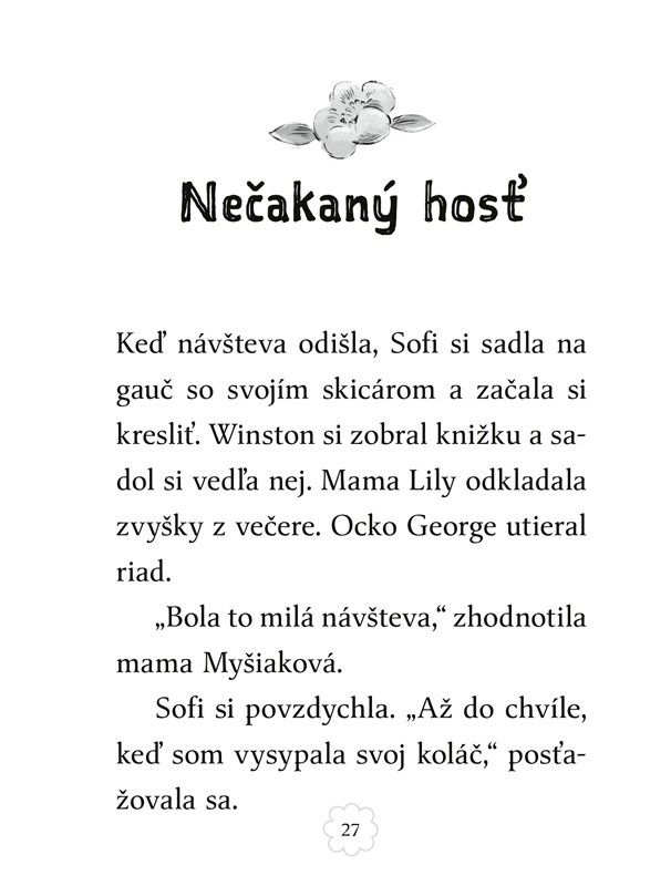 Myška Sofi 6: Nečakaný hosť Láskavý príbeh pre deti o starostlivosti a odvahe Na strechu Sofinho domčeka pristane zranený vtáčik. Má poranené krídelko a domov to nestihne sám. Našťastie je tu Sofi, ktorá neváha pomôcť – aj keď to znamená veľké dobrodružstvo pred zotmením! Šiesta časť obľúbenej série o Myške Sofi ponúka milý príbeh o súcite, odvahe a priateľstve, ideálny pre malých čitateľov.