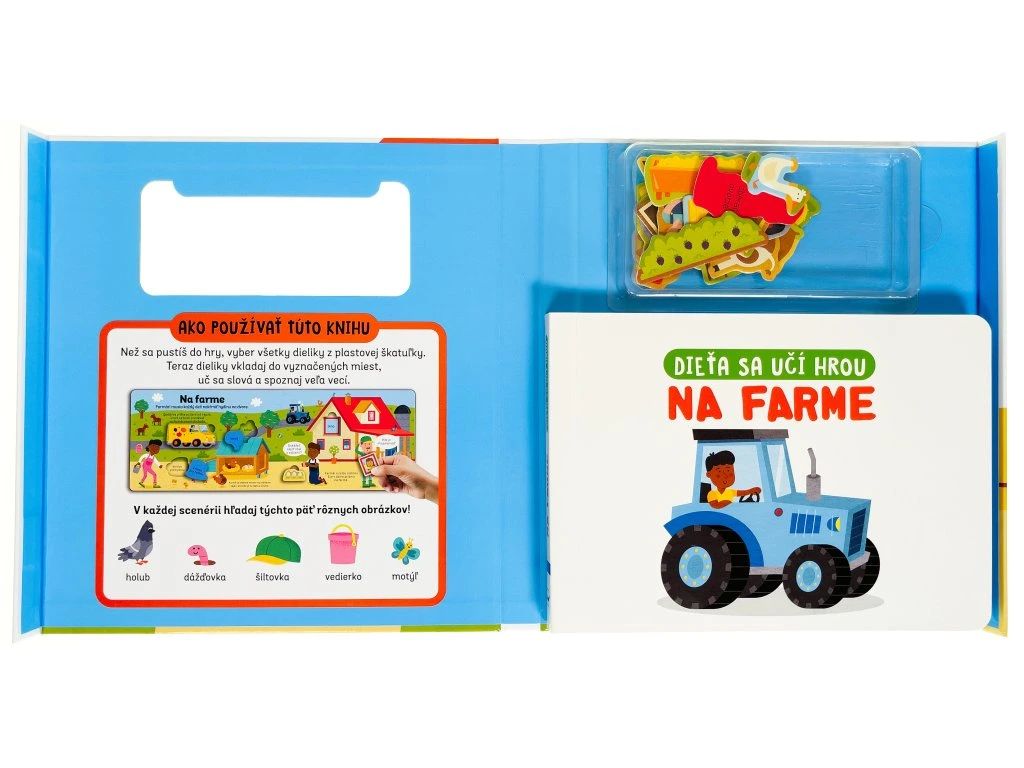 Dieťa sa učí hrou - Na farme Objavovanie farmy pomocou hry a puzzle pre najmenšíchKnižka s pevnými stránkami obsahuje viac ako 20 dielikov, ktoré deti budú vkladať do vyznačených miest, spoznávať farmu a precvičovať jemnú motoriku.