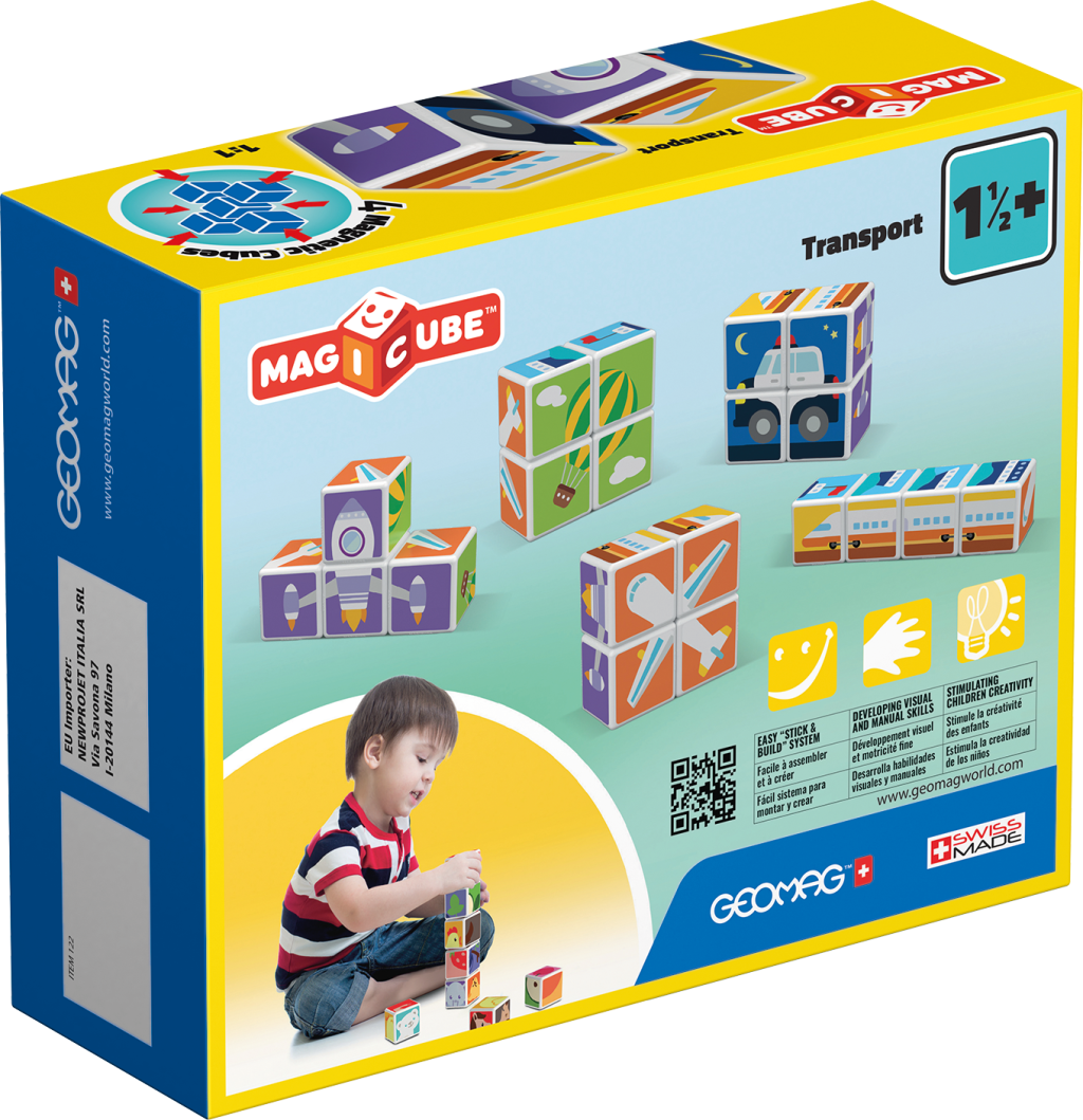 Magicube Transport 4 dielyDobrodružstvo s magnetickými kockami – postav si lietadlo, vlak aj raketu! (od 18 mesiacov) Lietadlo, vláčik alebo rovno kozmická raketa? Stačí si vybrať! S touto kreatívnou stavebnicou si deti môžu zostaviť vlastné dopravné prostriedky v 3D – rýchlo, jednoducho a hlavne zábavne. Magnetické kocky sa vďaka skrytým magnetkám ľahko spájajú a držia pevne pokope aj pri hraní. Otočiť, priložiť, zacvaknúť – dokáže to aj dieťa od 18 mesiacov!Obsah balenia: 4 magnetické kocky vhodné pre malé detské ruky 3 obojstranné kartičky = 6 inšpirácií na skladanie (dopravné prostriedky)Prečo si túto hračku obľúbite: Podporuje rozvoj jemnej motoriky, predstavivosti a logiky Ideálne na učenie tvarov, farieb a priestorového vnímania Bezpečný, odolný a zdravotne nezávadný materiál 3D stavanie vďaka magnetickému spojeniu – jednoduché a efektívne Perfektný darček pre malých staviteľovČi už ste doma, na cestách alebo v škôlke – táto sada zaručí hodiny tvorivej zábavy!
