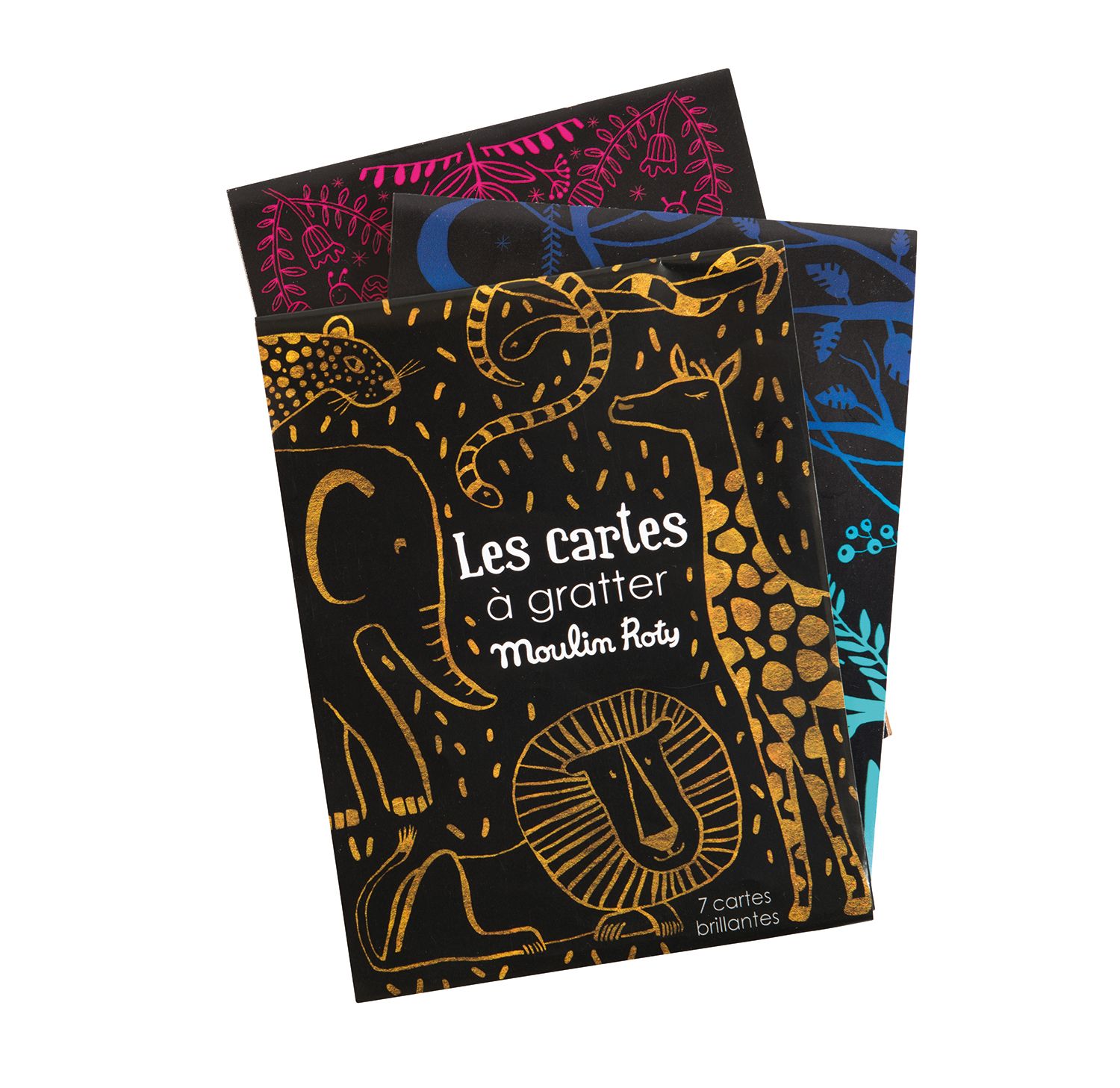 Sada obsahuje 7 černých karet a dřevěné pero. Děti perem vyškrabávají plochu a odhalují ukrytý obrázek v nádherných ilustracích Moulin Roty. Tato sada stimuluje dětskou představivost a kreativitu. Rozměry: 14 x 18 cm. Materiály: karton a dřevo. Vhodné od 3 let