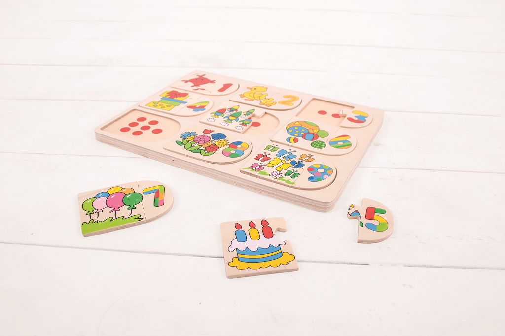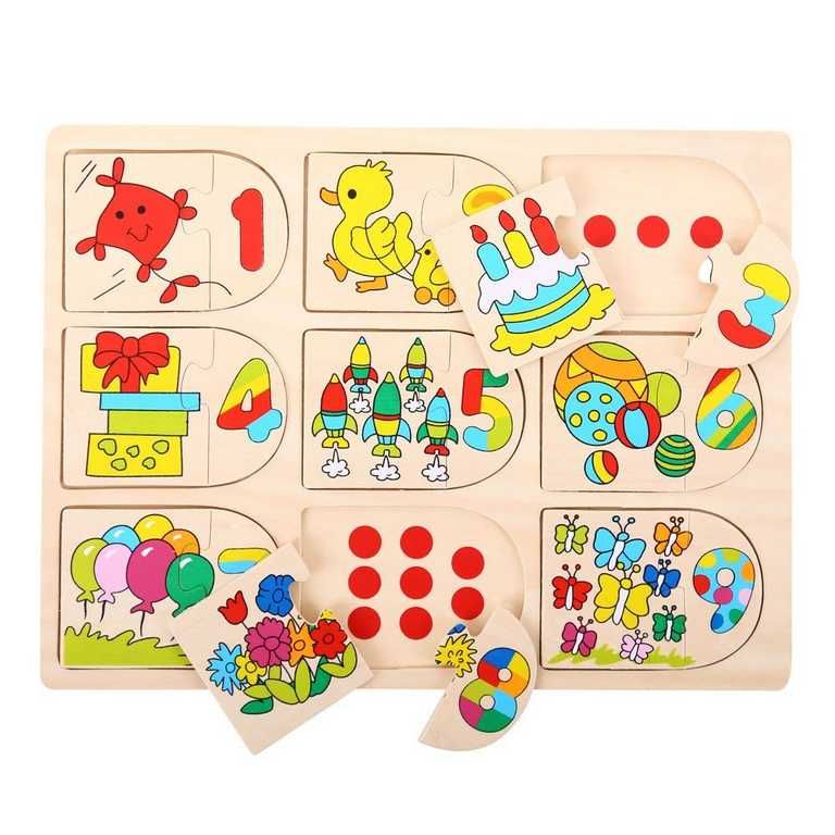 Vaši malí zvědavci budou určitě milovat tohle malé, zajímavé a chytré puzzle. Nejen, že je bude bavit třídit kousky do správných míst, ale mohou vkládat jen samotné obrázky a k nim pak přiřadit ta správna čísla. Každý kousek dřevěné skládačky je dimenzovaný tak, aby usnadnil zvedání, uchopení v malé dětské ručičce. Puzzle jsou potištěny obrázky nebo barvami, které napomáhají procesu učení a dodávají vzdělávací hodnotu. Skvělý způsob, jak rozvíjet obratnost, rozpoznávání tvarů, koncentraci a počítání již od útlého věku. Hlavní vlastnosti: vyrobeno z vysoce kvalitních materiálů ze zodpovědných zdrojůodpovídá současným evropským bezpečnostním normám