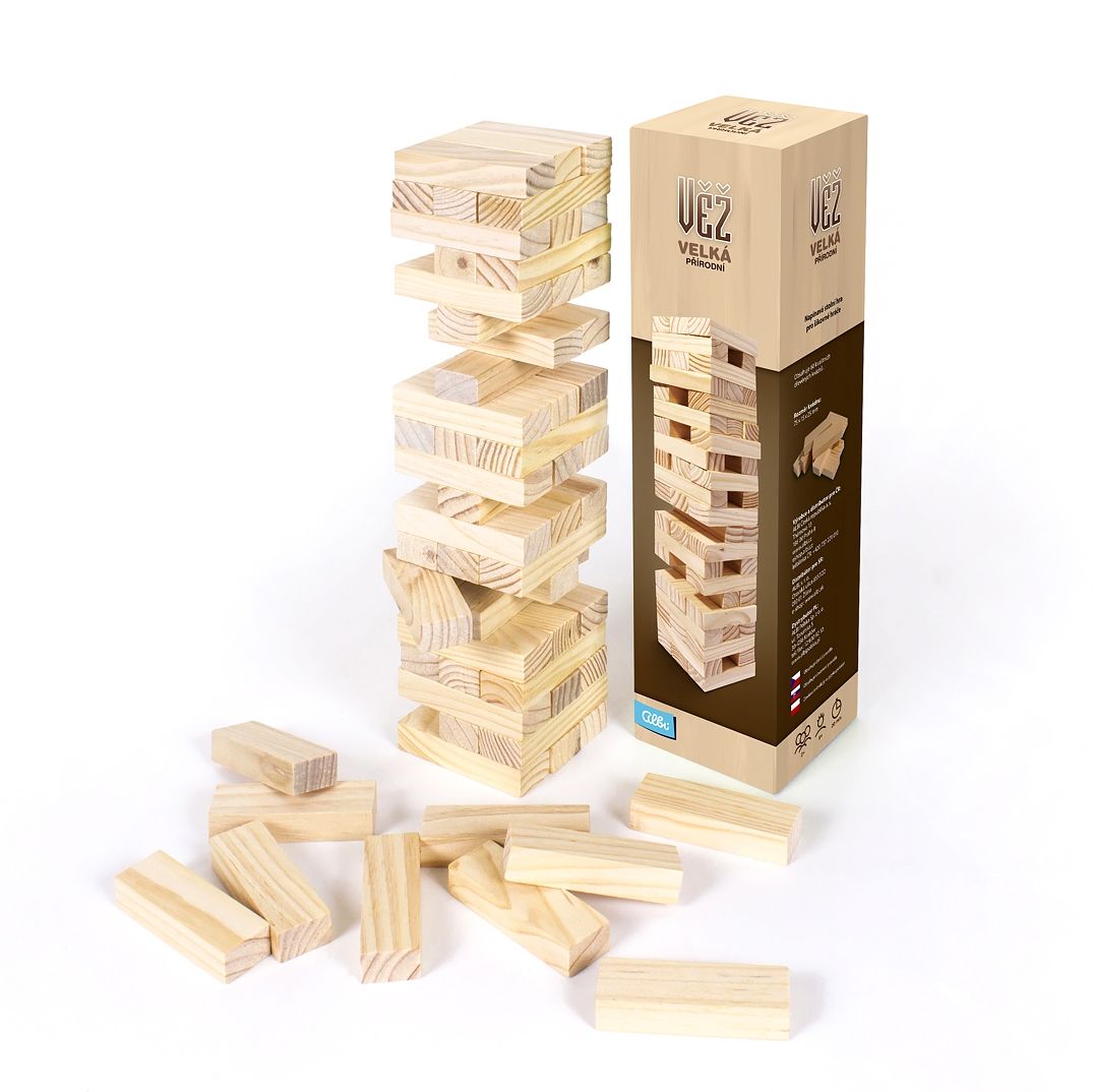 Klasická stolní hra, která nabízí mnoho zábavy a vtipných okamžiků. Obsahuje 63 kvalitních dřevěných kamenů. Na stole se postaví věž ze všech kamenů. Hráči se střídají v pořadí a postupně se snaží opatrně jeden kámen z věže vytáhnout, aniž by věž spadla. Vítězí ten hráč, který jako poslední odejme z věže jeden kámen a opět jej položí nahoru na věž dříve, než věž spadne! Věk: 6+ Počet hráčů: 2+ Délka hry: 20 min.
