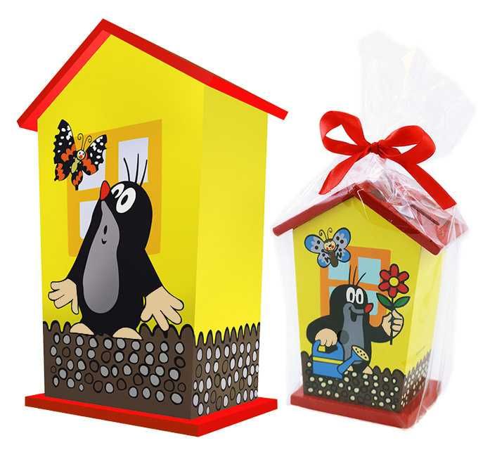 Krásná dřevěná pokladnička s motivem legendárního Krtka. Pokladnička má ve spodní části gumovou zátku. Tak šetři s Krtečkem! Pokladnička je zabalena v dárkovém balení.   Hlavní vlastnosti: dárkové balení© Zdeněk Miler