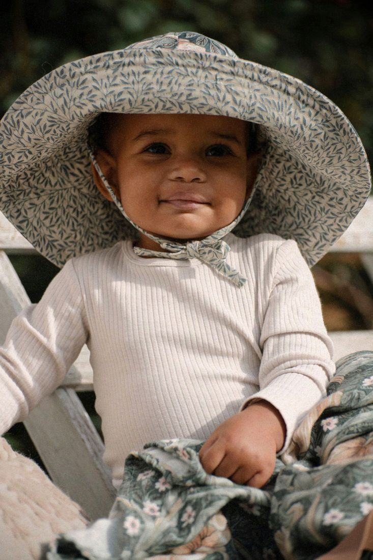 Představujeme vám vyjímečnou limitovanou kolekci, která vznikla ve spolupráci s legendární britskou značkou Morris & Co.  Krásný a pohodlný klobouček z nové limitované kolekce ochrání vaše dítko před sluníčkem. Klobouček má široký okraj, který se dá ohrnout a šňůrky na stahování pod krkem.