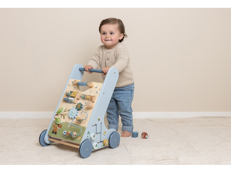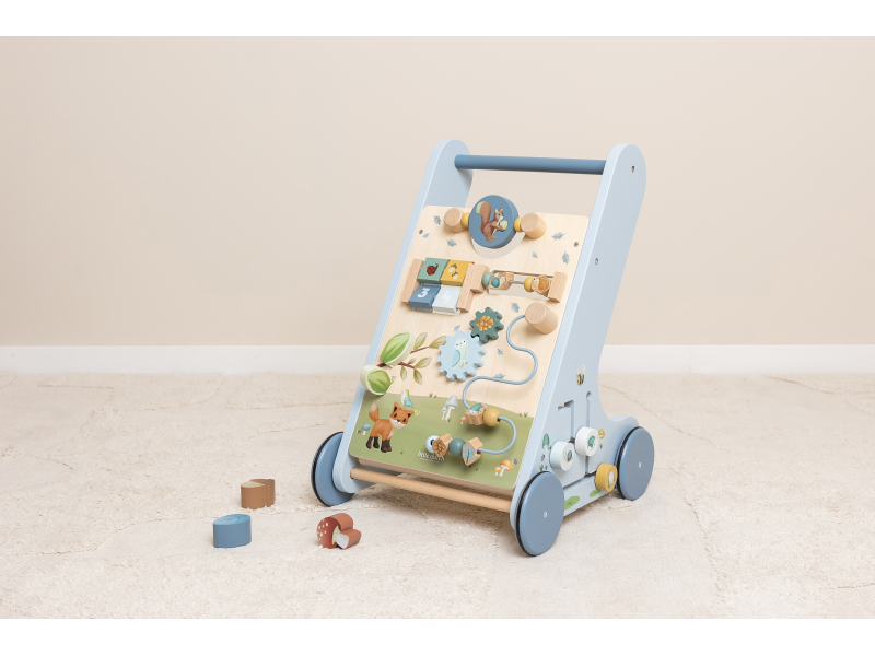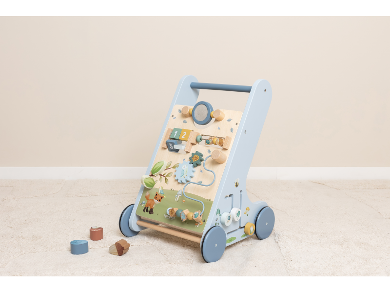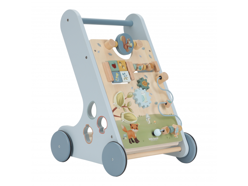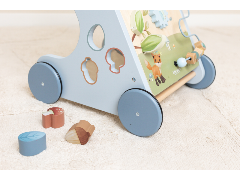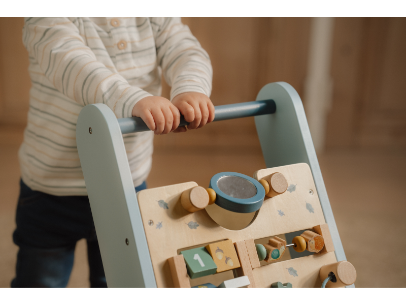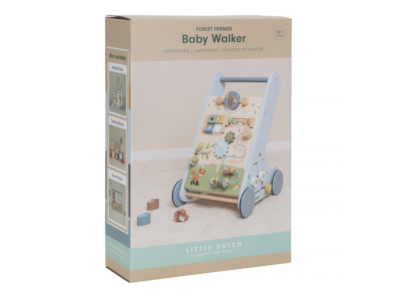 Dřevěné multifunkční chodítko se stabilní konstrukcí je ideální pro trénování chůze dětí od 12 měsíců, které jsou téměř připraveny učinit první kroky. Užijte si společně radostné okamžiky, když vaše dítě poprvé přejde celou místnost! Chodítko zároveň nabízí řadu zajímavých aktivit pro zkoumání a pozorování. Pohyblivé a otáčivé části s s krásnými ilustracemi motivů ze života v lese dítě zabaví a zároveň podporují rozvoj jeho motorických dovedností. Gumová kolečka nebudou dělat žádné stopy na podlaze a jsou bezpečná pro použití v interiéru. Chodítko je součástí designové kolekce hraček a doplňků Little Dutch Forest Friends inspirované životem v lese. Vyrobeno z dřeva certifikovaného FSC. Rozměry: 32,5 x 35,5 x 49 cm Vhodné pro děti od 12 měsíců.
