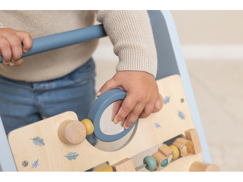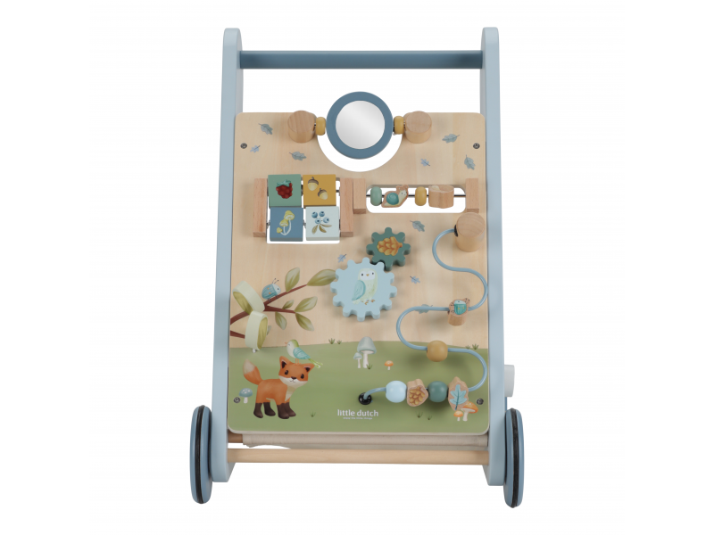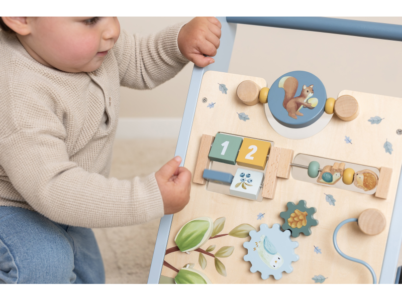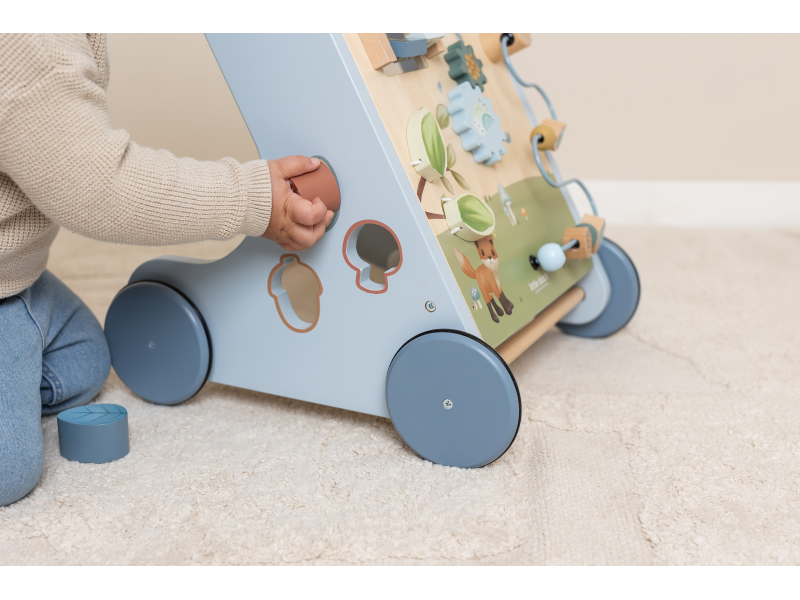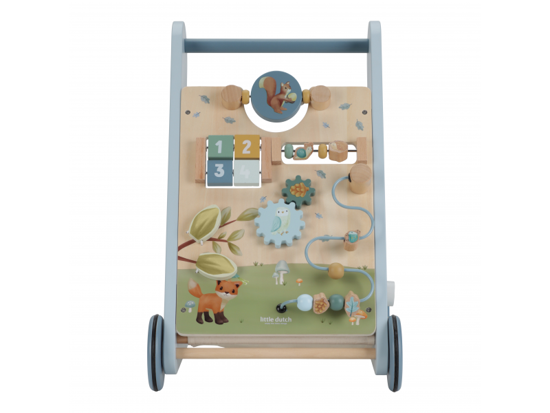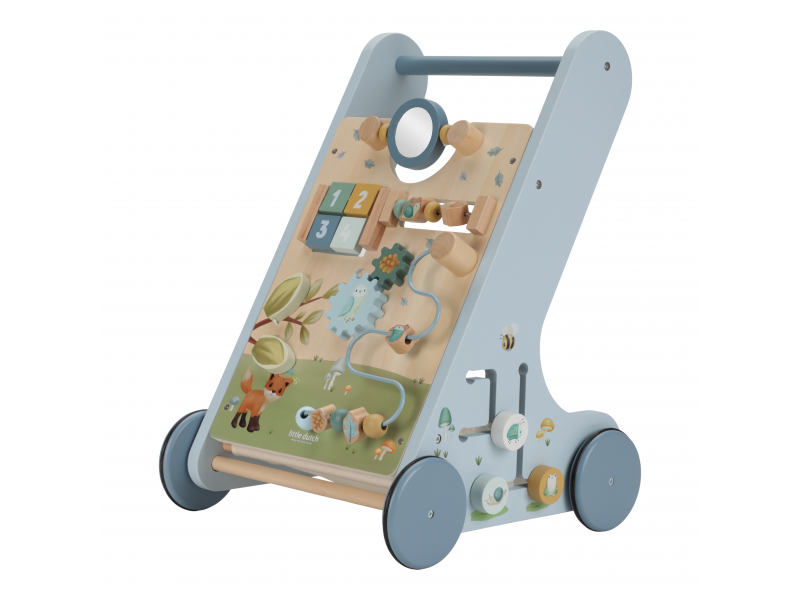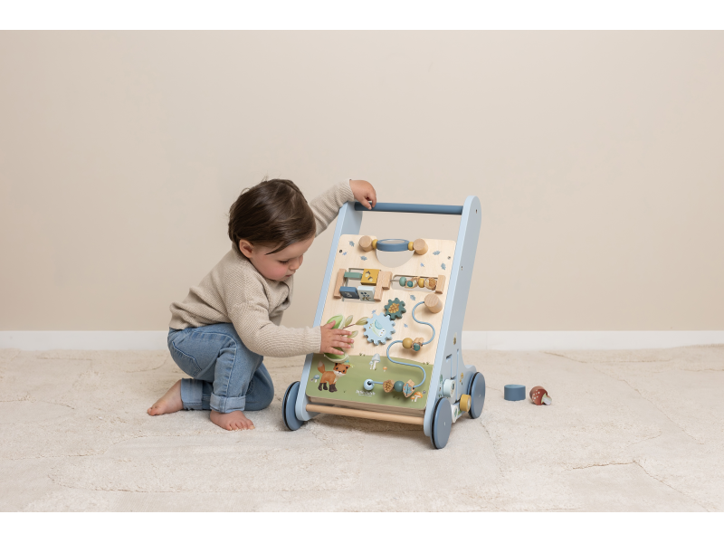 Dřevěné multifunkční chodítko se stabilní konstrukcí je ideální pro trénování chůze dětí od 12 měsíců, které jsou téměř připraveny učinit první kroky. Užijte si společně radostné okamžiky, když vaše dítě poprvé přejde celou místnost! Chodítko zároveň nabízí řadu zajímavých aktivit pro zkoumání a pozorování. Pohyblivé a otáčivé části s s krásnými ilustracemi motivů ze života v lese dítě zabaví a zároveň podporují rozvoj jeho motorických dovedností. Gumová kolečka nebudou dělat žádné stopy na podlaze a jsou bezpečná pro použití v interiéru. Chodítko je součástí designové kolekce hraček a doplňků Little Dutch Forest Friends inspirované životem v lese. Vyrobeno z dřeva certifikovaného FSC. Rozměry: 32,5 x 35,5 x 49 cm Vhodné pro děti od 12 měsíců.