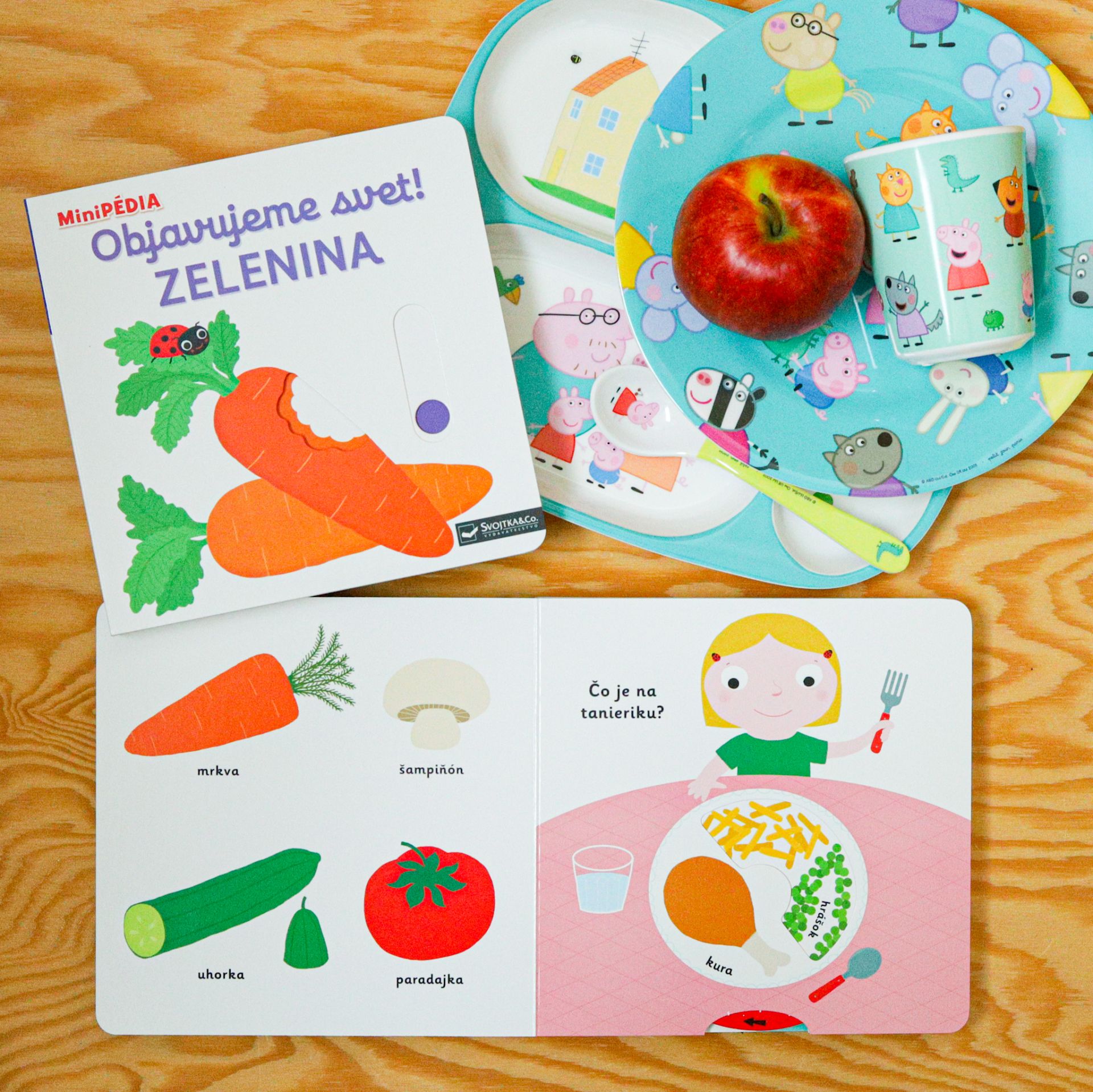 MiniPÉDIA - Objavujeme svet! JedloAk hľadáte encyklopédiu pre najmenšie detičky, je tu Minipédia! Súbor leporel z edície Objavujeme svet! Spĺňa do bodky Komenského filozofiu – učenie hrou. Tentokrát bude stredom záujmu jedlo. Jednoduché veľké ilustrácie deti naučia názvy základných jedál - mrkva, uhorka, rajčina, hríb, na tanieri naložené kura s hranolkami a hráškom, jahoda, čerešňa, pomaranč, hruška banán, chlebík, maslo, syr, vajcia a nechýbajú ani prvé sladkosti. Leporelo však zaujme nielen ilustráciami uznávanej francúzskej výtvarníčky Nathalie Coux, ale predovšetkým množstvom interaktívnych prvkov. Deti tak s pomocou len svojho pršteka rozhýbu jednotlivé jedlá zobrazené v knihe, roztočia tanier, dajú banán chlapčekovi do pusy, či vypijú s ním mliečko. Záverečná dvojstrana rekapituluje všetky jedlá, ktoré dieťatko spoznalo. Masívne leporelo je určené pre detičky od jedného roka a okrem rozvíjania slovnej zásoby slúži aj na rozvíjanie jemnej motoriky.