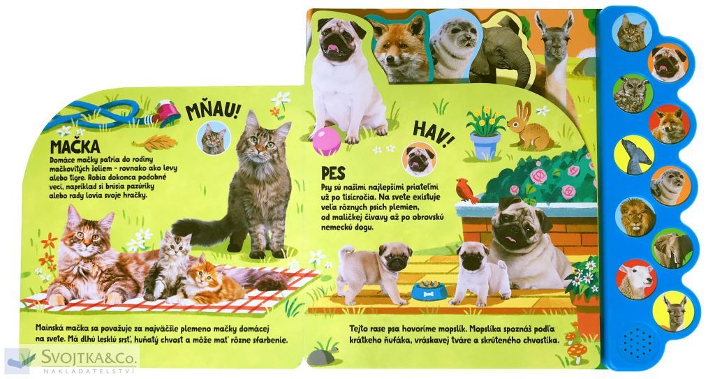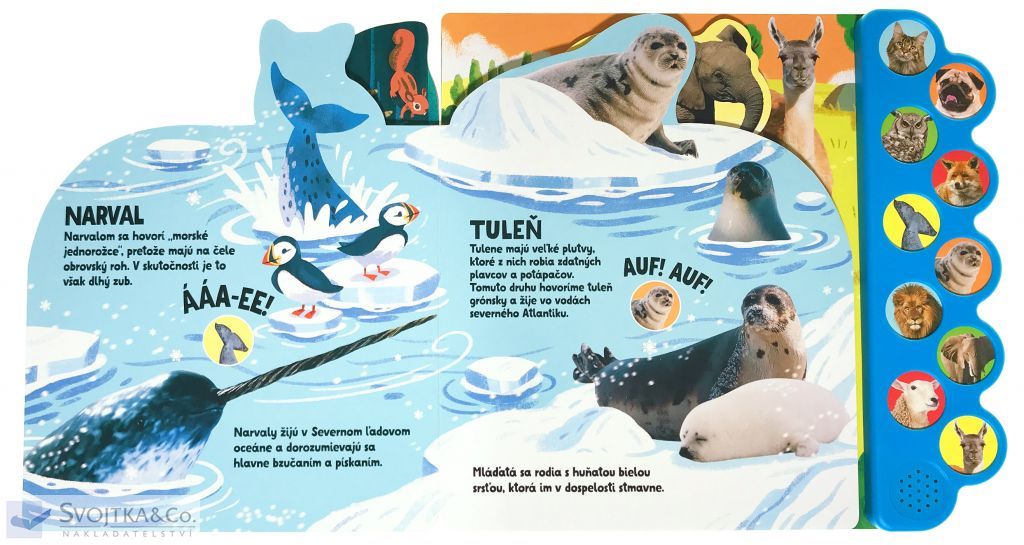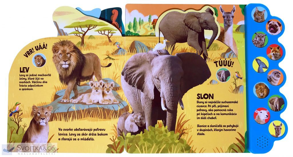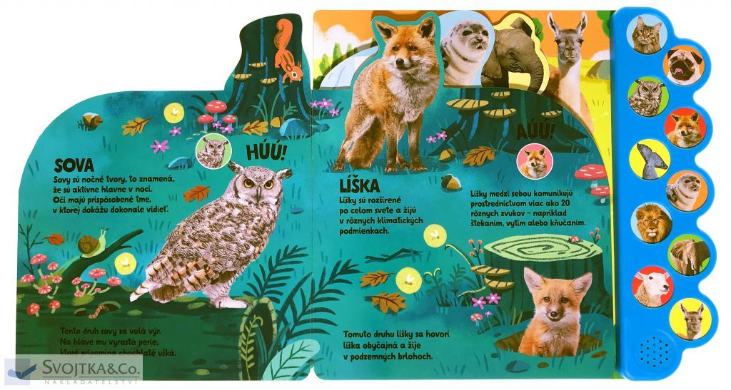 Húú! Mňau! Vrr! Vypočujte si zvieratá z celého sveta!10 zvukov zvierat. Spoznaj zvieratá z celého sveta a po stlačení tlačidla si vypočuj, aké rôzne zvuky vydávajú! Kniha obsahuje tri výmenné batérie.