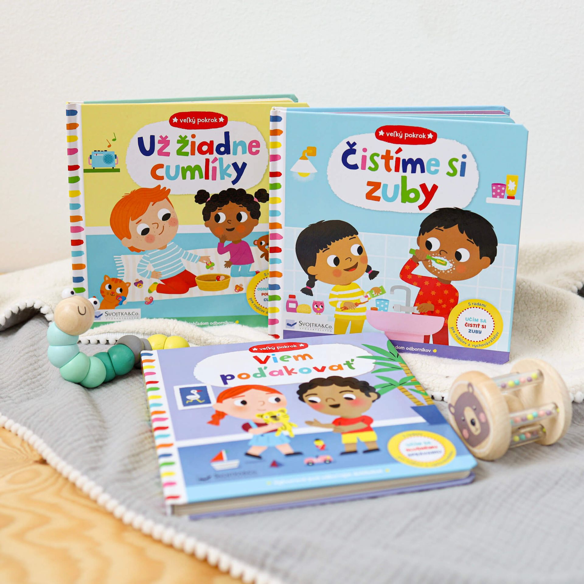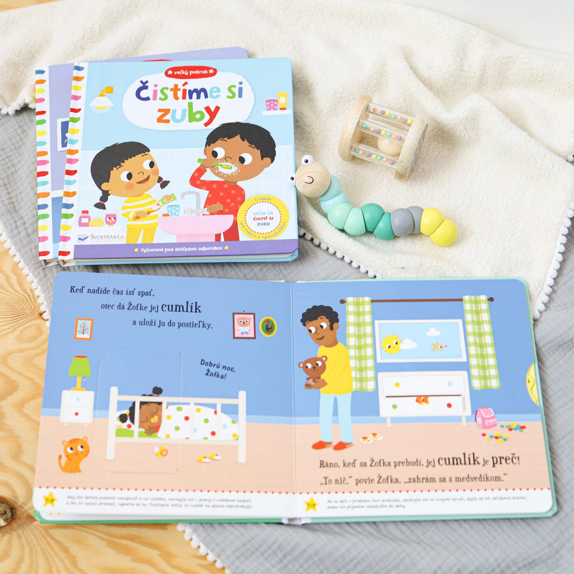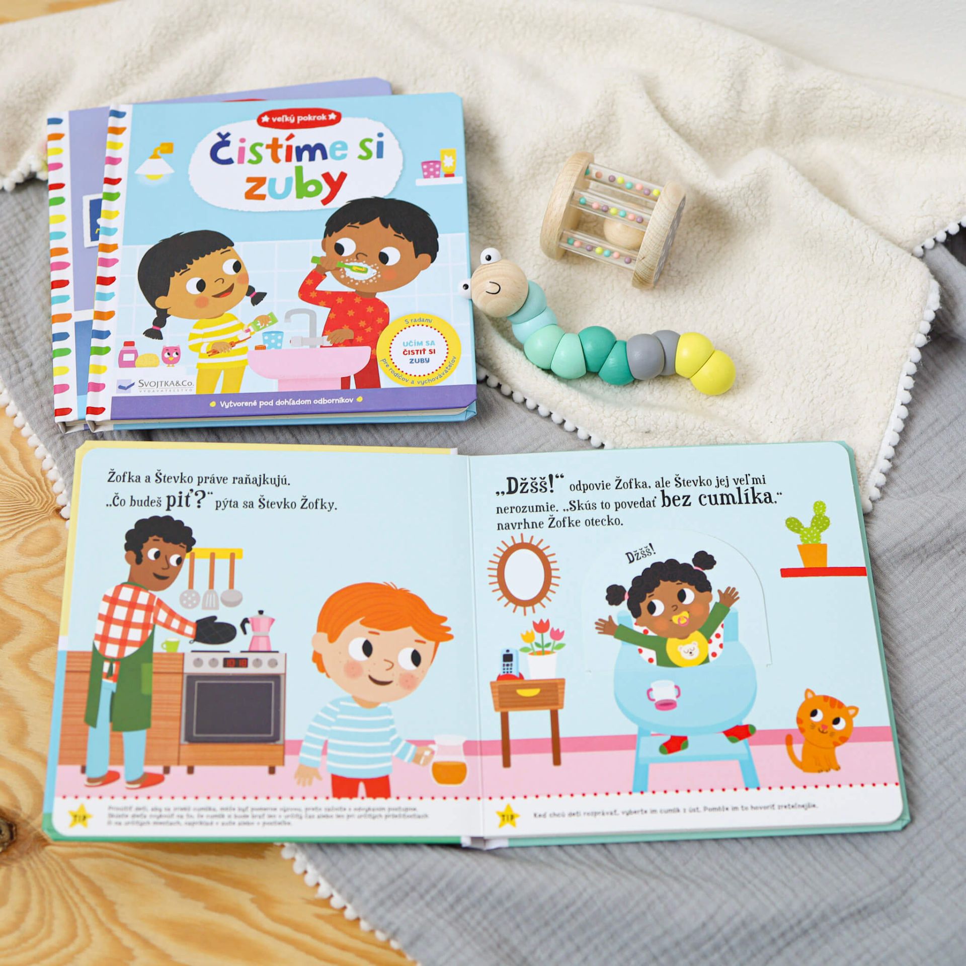 Už žiadne cumlíky - Veľký pokrokKrátky príbeh o Žofke pomôže deťom s odvykaním od cumlíka.Žofka už začína byť veľké dievča, ktoré už cumlík prestáva potrebovať. Nielenže jej prekáža pri rozprávaní, ale keď sa s ockom a bračekom dobre baví, úplne naň zabúda. S pomocou tejto knihy môžete deťom ukázať, aké jednoduché môže byť lúčenie sa s cumlíkom.  Kniha obsahuje obľúbené pohyblivé prvky, ale aj odborné rady pre rodičov a vychovávateľov.Na každej dvojstrane nájdete radu, ako sa závislosti od cumlíkov postupne zbaviť a ako vytrvať, ak sa to hneď na prvý raz nepodarí.