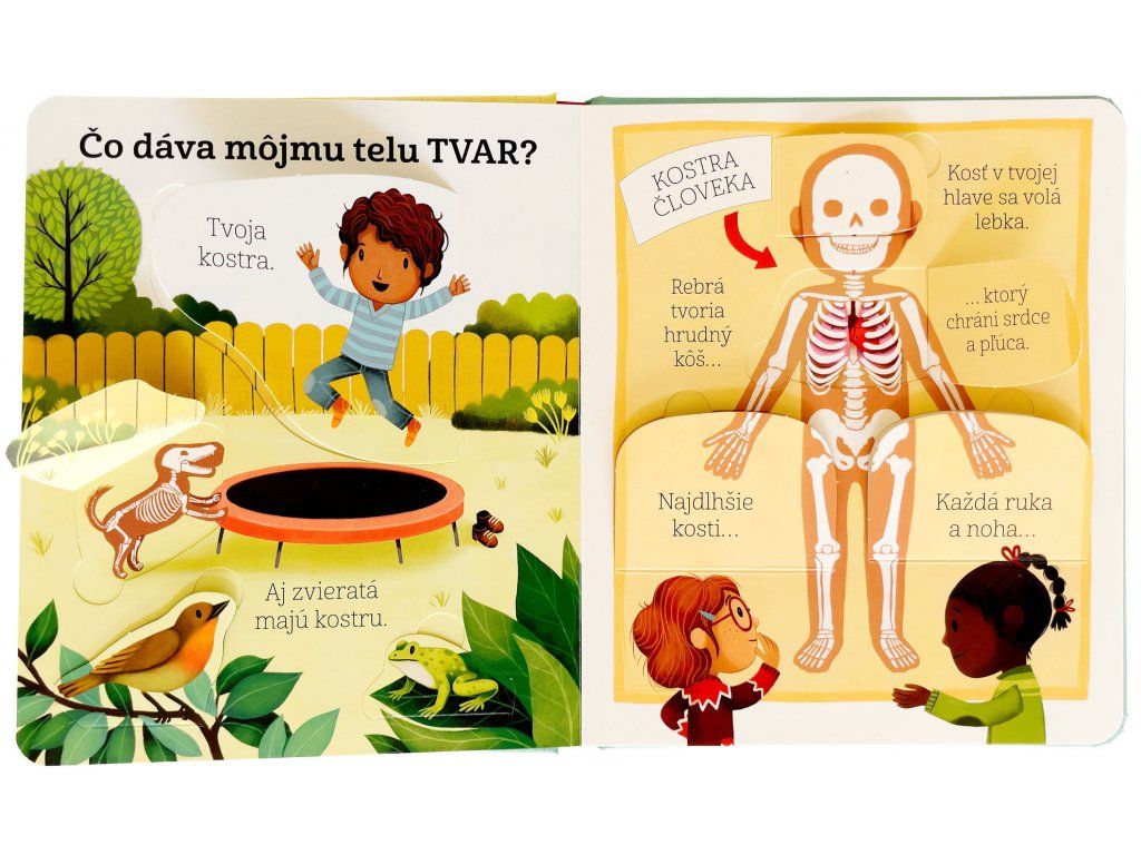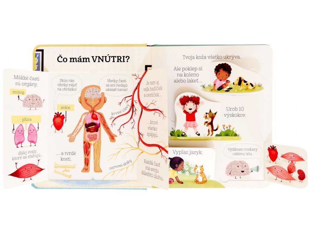 Čo sa deje v mojom tele?Čo sa deje v mojom tele? Čo mám vnútri? Ako sa dokážem hýbať?Leporelo s odklápacími okienkami jednoducho a zrozumiteľne zoznamuje malé deti s ľudským telom a odpovie na časté otázky, ktoré deti rady kladú. Deťom sa odkryjú záhady ľudského tela.Táto ilustrovaná knižka s odklápacími okienkami obsahuje odpovede na najčastejšie otázky detí o ľudskom tele. Kniha deti zoznamuje s kostrou, svalmi, krvným obehom aj mozgom, naším osobným superpočítačom, ktorý všetko riadi. Vysvetľuje základné telesné funkcie a objasňuje, čo všetko sa nachádza pod našou kožou. Vďaka tomuto krásne ilustrovanému leporelu sa najmenším deťom odkryjú záhady ľudského tela a zo spoznávania nových vecí bude veľká zábava!