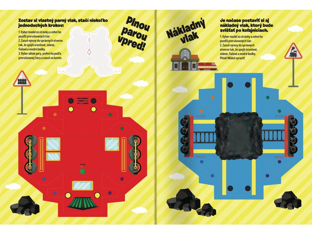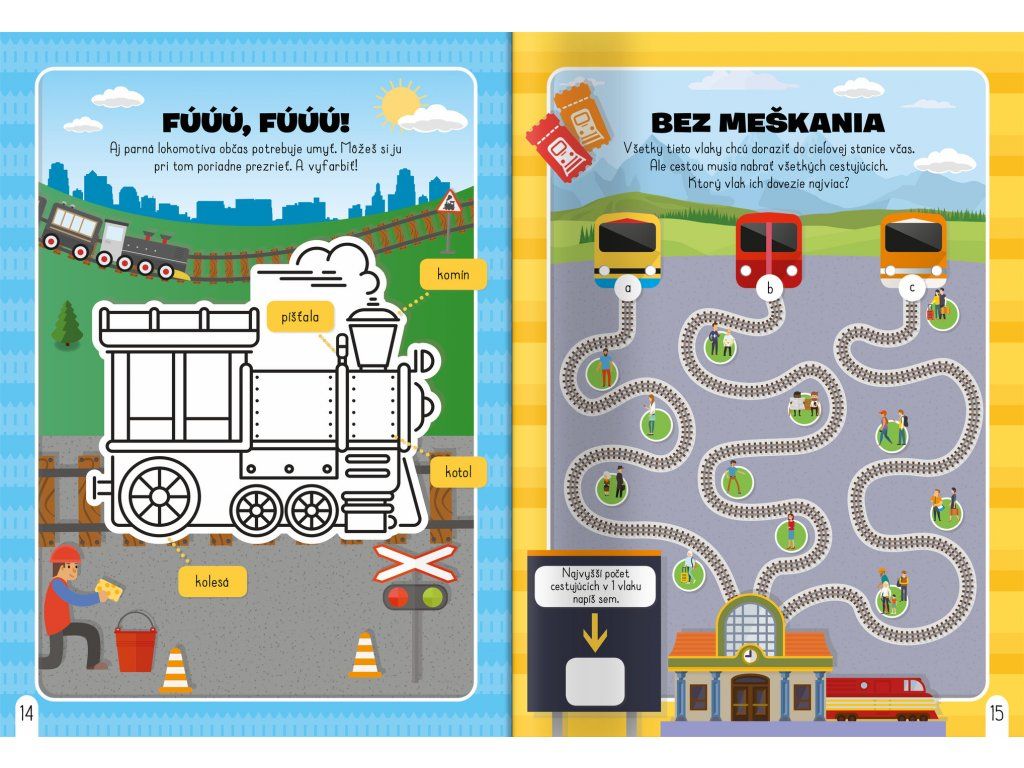 Vlaky - Aktivity so samolepkamiNastupovať a odchádzame za úlohami a výzvami s 300 samolepkami a vytláčacími modelmi. Táto kniha plná aktivít s veľkým množstvom samolepiek ti zaručí veľa zábavy, ale objavíš aj niečo nové! Na každej stránke na teba čaká mnoho úloh a výziev! Deti si precvičia jemnú motoriku a koordináciu oka i ruky.Dopĺňaj chýbajúce diely na vlaky, pomôž stratenému vlaku nájsť cestu na stanicu alebo sa nauč nakresliť úplne úžasný vlak! Súčasťou knižky je viac ako 300 samolepiek aj malé vytláčacie modely vlakov, ktoré rozhodne potešia každého malého vlakového nadšenca! Tak plnou parou vpred, nastupovať a odchádzame za zábavou a dobrodružstvom.