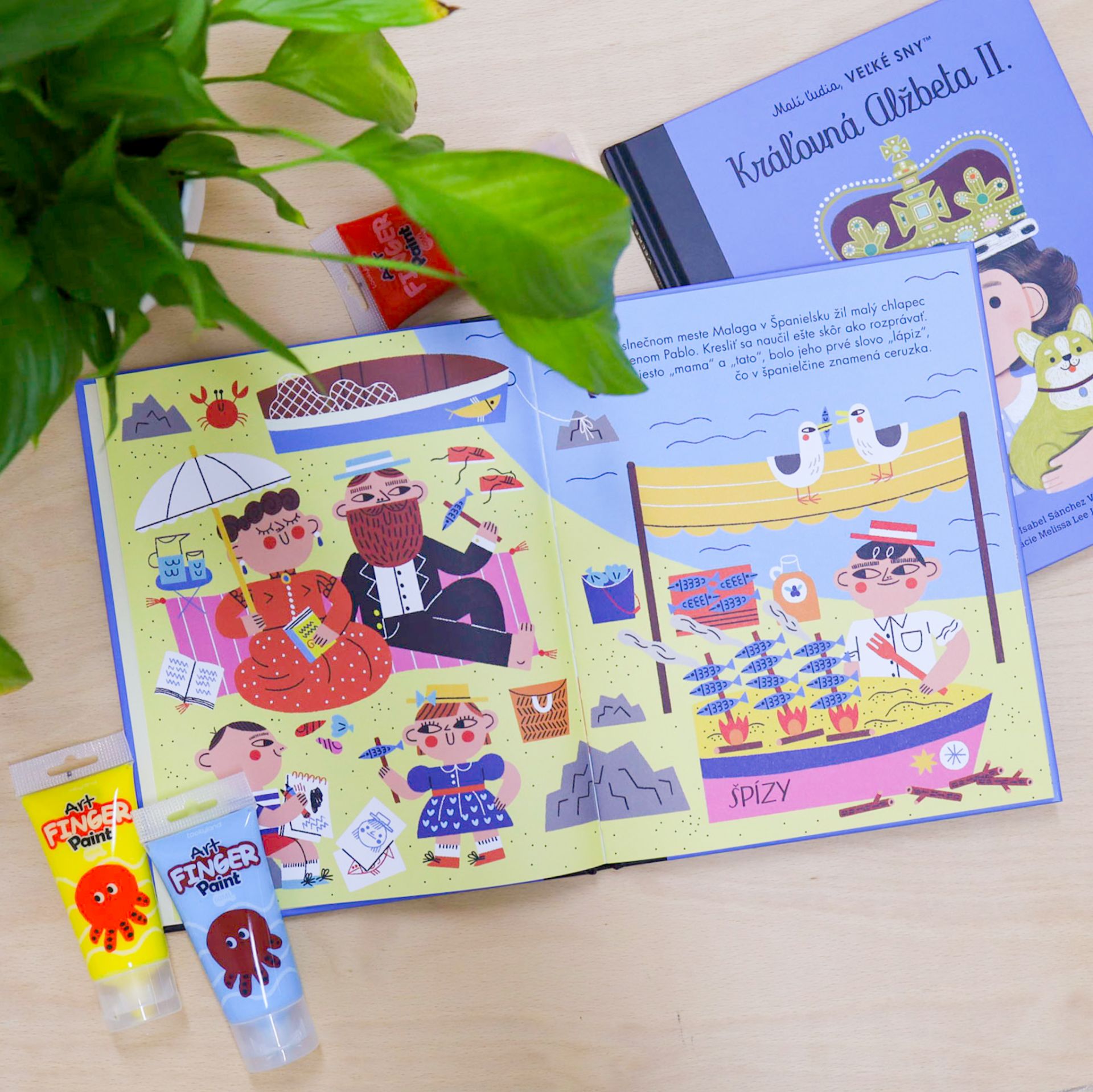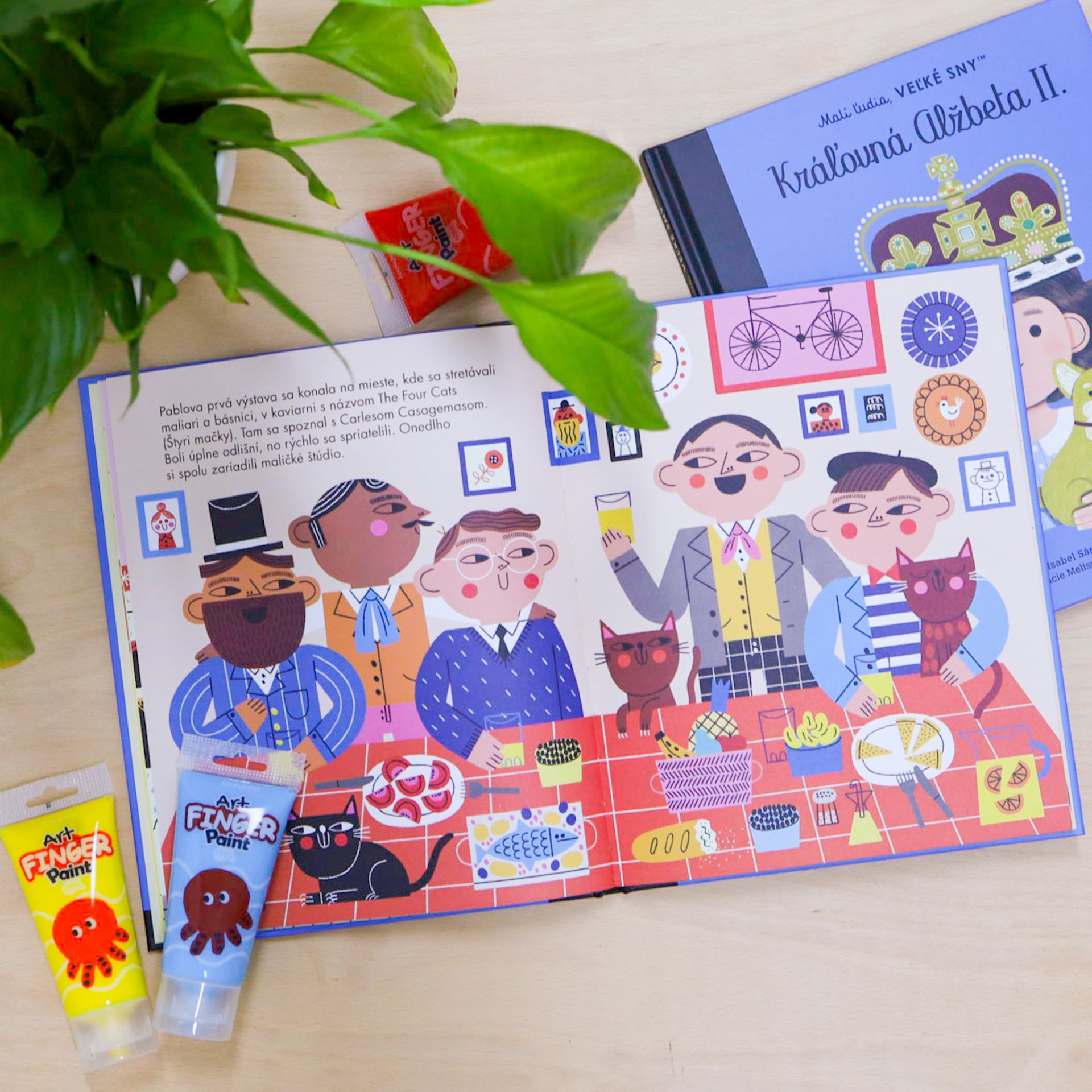 Pablo Picasso - Malí ľudia, veľké snyNahliadni do života slávneho umelca Pabla Picassa.Zdalo by sa, že malý Pablo bol predurčený na to, aby sa stal veľkým umelcom - jeho prvé slovo bolo „ceruzka"! Keď zvládol všetky známe maliarske techniky, rozhodol sa svoj život zasvätiť umeniu. Nebolo to však jednoduché. Keď bol chudobný, pálil vlastné obrazy, aby sa udržal v teple. Pablo sa však nikdy nevzdal svojich snov a navždy zmenil svet umenia. Na konci knihy nájdeš skutočné fotografie Pabla a fakty z jeho života.Zoznám sa s výnimočnými ľuďmi a ich nevšednými osudmi. Či už ide o dizajnérov, umelcov či vedcov, všetci dosiahli úžasné úspechy, hoci na začiatku bol každý z nich len malé dieťa s veľkými snami.
