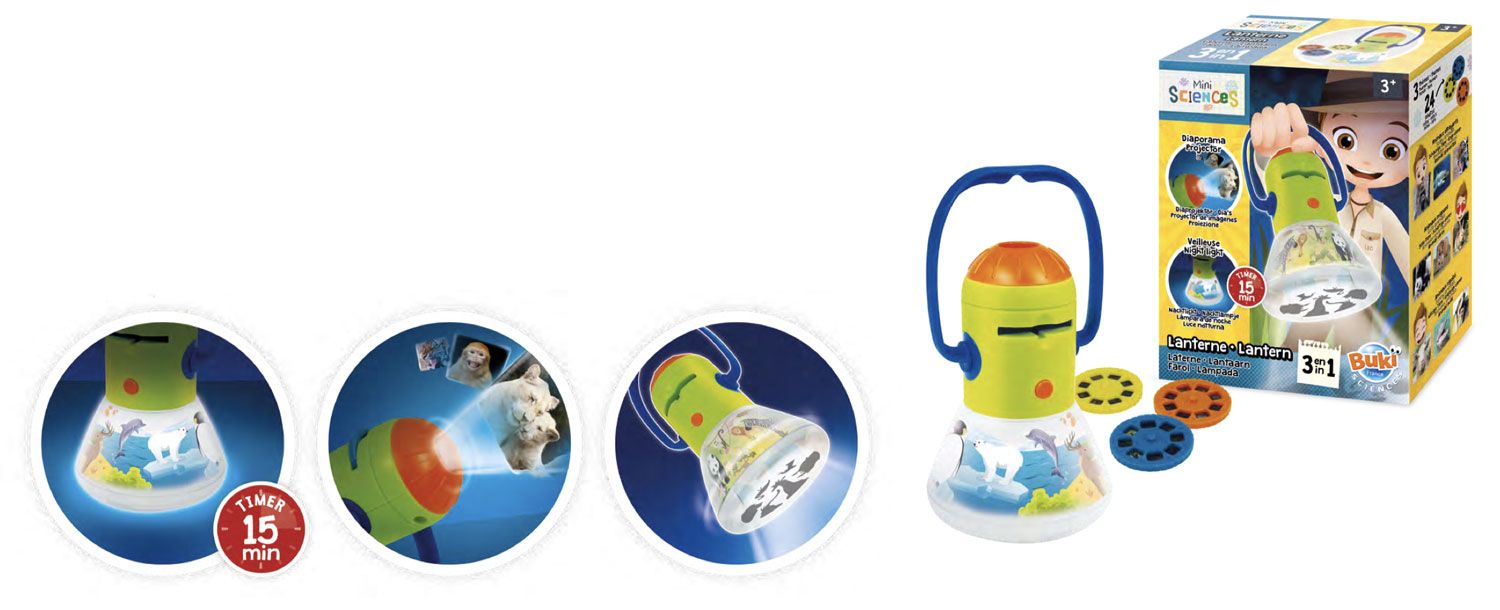 Projektor lampa 3v1 ZvieratáÚchvatné premietanie zvierat vo vysokej kvaliteVyberte sa s deťmi na úžasnú cestu do ríše zvierat priamo z pohodlia vášho domova s projektorom zvierat 3v1! S 24 perfektne ostrými snímkami na troch výmenných diskoch budete mať úžasné vizuálne zážitky, ktoré prenesú atmosféru džungle, savany alebo pralesa priamo na stenu alebo strop vašej izby. Zvieratá z exotických destinácií po celom svete vám aj deťom umožnia cítiť sa ako priamo uprostred ich prirodzeného prostredia. S projektorom môžete dosiahnuť obraz až do šírky 1 metra a pritom si zachovať úplnú ostrosť a detaily. Stačí ho umiestniť len niekoľko metrov od steny alebo stropu a nechať sa uniesť do fascinujúceho sveta divočiny. S možnosťou zaostrenia si môžete prispôsobiť obraz presne podľa svojich predstáv a zažiť tak ešte intenzívnejší zážitok. Všestranné využitie do detskej izbyProjektor značky BUKI nie je len zariadenie na premietanie, ale aj praktický pomocník pre rôzne situácie v domácom prostredí. Okrem premietania slúži aj ako útulné nočné svetlo, ktoré deťom poskytne dostatok jemného osvetlenia na pokojné čítanie alebo iné relaxačné aktivity pred spaním. S modernou LED technológiou zabezpečí dlhú životnosť a efektívnu spotrebu energie. V režime nočného svetla sa automaticky rozsvieti malá lampička, ktorá vytvorí príjemnú atmosféru v izbe. Po 15-tich minútach sa svetlo automaticky zhasne. V režime lampy sa deti môžu tešiť na originálne zobrazenie siluet zvieratiek na stenu, čo robí z projektoru nielen funkčný, ale aj dekoratívny prvok interiéru. Tu nájdete návod