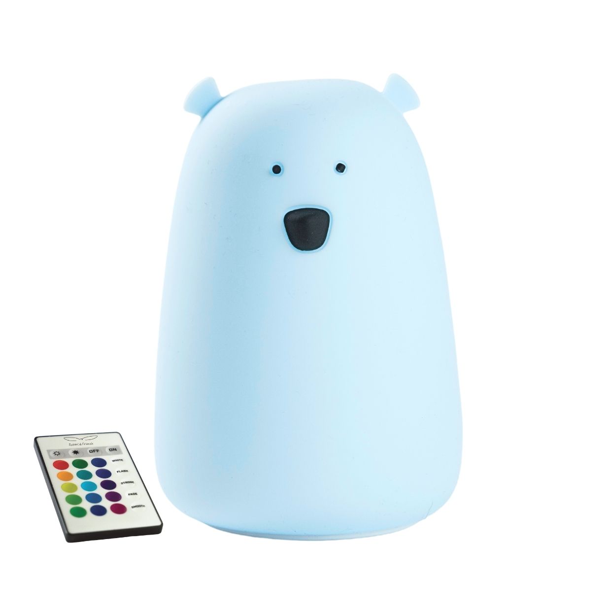 Detská dotyková lampa s diaľkovým ovládaním Veľký medvedík Modrý Roztomilá detská lampička s diaľkovým ovládaním Detská dotyková lampa Veľký medvedík je skvelým doplnkom do každej detskej izby. Ponúka rôzne možnosti svietenia v siedmich rôznych farbách, vrátane svetla vhodného na čítanie knižky pred spaním a jemného svetla, ktoré deťom pomôže zaspať. Jednoducho sa ovláda dotykom, je prenosná, preto si ju deti môžu zobrať všade, kde sa chystajú spinkať.Praktické a prenosné nočné svetielko Rodičom detská lampička uľahčuje nočnú starostlivosť o dieťa. Vďaka nej môžete bez problémov na neho dohliadať, nadojčiť ho alebo prebaliť. Po úplnom nabití vydrží lampa svietiť až 12 hodín a ponúka možnosť automatického vypnutia po 2 hodinách, čo šetrí energiu. Diaľkové ovládanie umožňuje vypnúť lampu bez obáv, že sa dieťatko zobudí.Vlastnosti:- mäkký a na dotyk príjemný silikón bez BPA- ovláda sa dotykom- svieti v 7 farbách- zmena intenzity svetla- doba svietenia po úplnom nabití cca 12 h- možnosť automatického vypnutia po 2 hod- multifunkčné diaľkové ovládanie- nabíjanie cez micro-USB kábel (súčasťou balenia)- nezohrieva sa- ľahko sa čistí