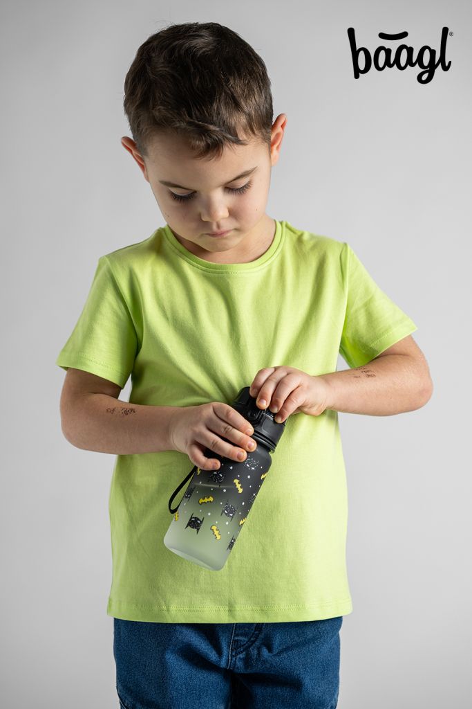 Tritanová fľaša pre deti Gradient Batman Mask 350 ml V školskej výbave nesmie chýbať poriadna fľaša na nápoje Fľaša od BAAGLa je vhodná ako do školy, tak aj na výlety alebo na športový krúžok. Uzamykateľné viečko neprepustí ani kvapku nápoja a zabezpečuje jednoduchú a intuitívnu manipuláciu. Súčasťou fľaše je sitko, vďaka ktorému môžete fľašu použiť i na limonády s ovocím alebo čaj (materiál je vhodný aj na horúce nápoje). K fľaši je pripevnené pútko, ktoré umožňuje pohodlné nosenie v ruke.Certifikovaný tritánový materiál zaručuje maximálnu bezpečnosť a kvalitu nápoja Nevydáva nepríjemný plastový zápach, ako je to pri iných plastových materiáloch, a zároveň neobsahuje žiadne zdraviu škodlivé látky (BPA, PVC, ftaláty, či iné). Ostatne, výrobky z tritánu sa používajú aj v zdravotníctve. Používaním fľaše znížite plastový odpad z jednorazových PET fliaš a pomôžete tak znížiť objem vyprodukovaného plastového odpadu, ktorý doteraz končí prevažne na skládkach, v spaľovniach, alebo často aj v prírode.Objem fľaše je 350 ml.