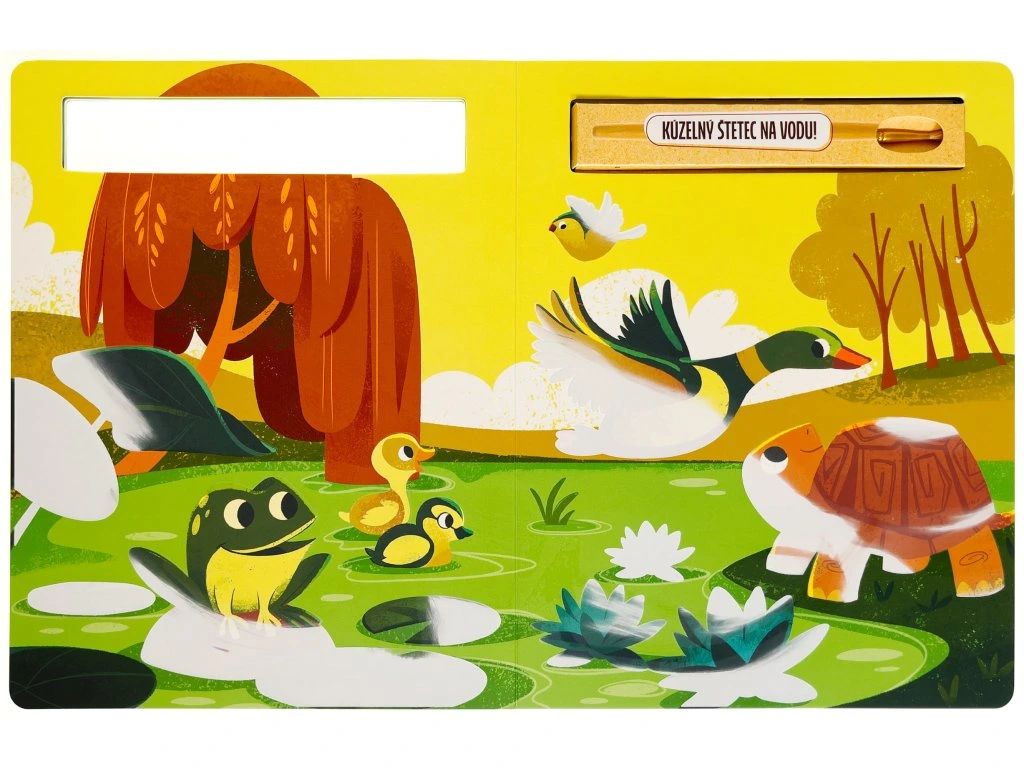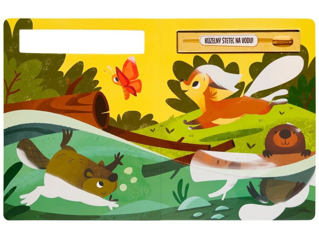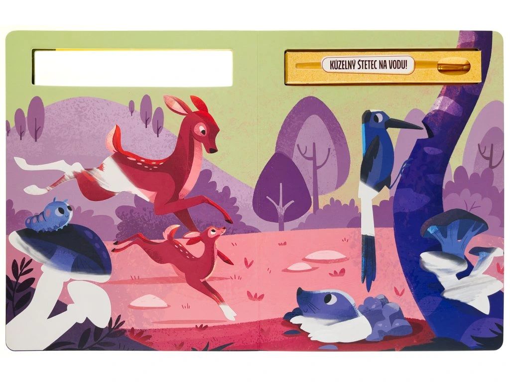 V lese - Nechaj ožiť farby Magické maľovanie vodou pre najmenších objaviteľovPretri štetcom biele miesta v tejto knihe určenej na maľovanie vodou. Obrázky zvierat z lesa sa ako kúzlom objavia a po uschnutí farby zasa zmiznú.