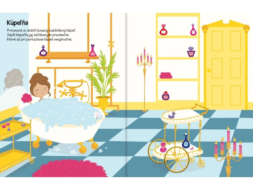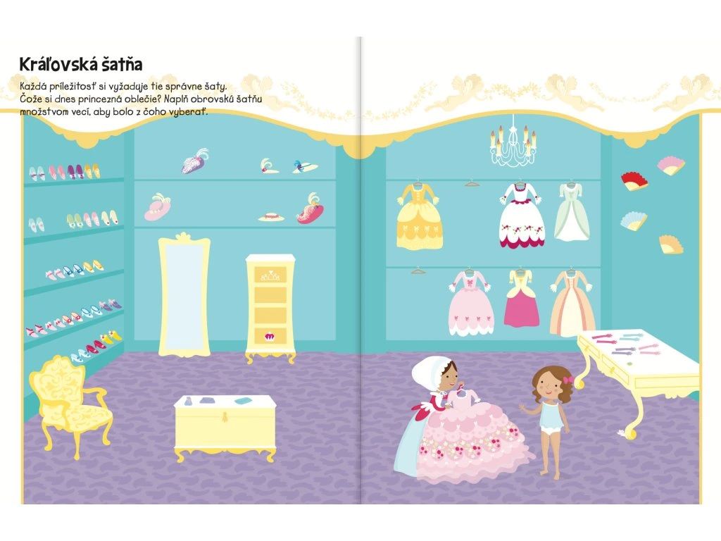 555 samolepiek - Princeznin palác Rozprávkové samolepkové dobrodružstvo Samolepkový zošit s najrôznejšími samolepkami s tematikou princezien rozvíja predstavivosť,trpezlivosť a jemné motorické zručnosti.